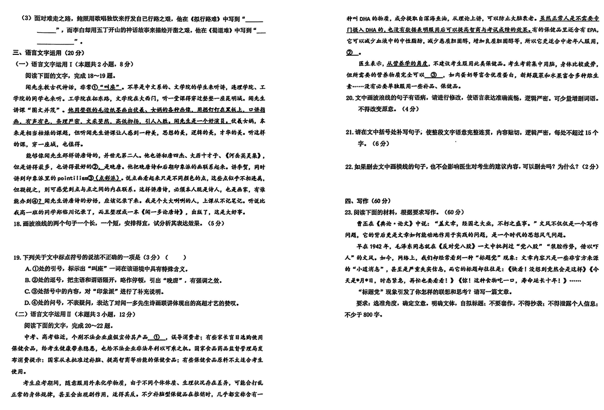 语文试题及答案解析