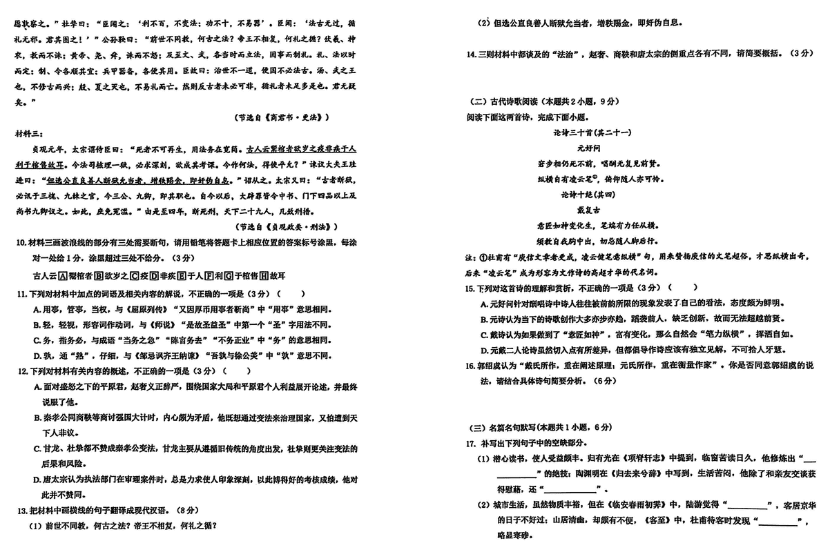 黑龙江 语文试题