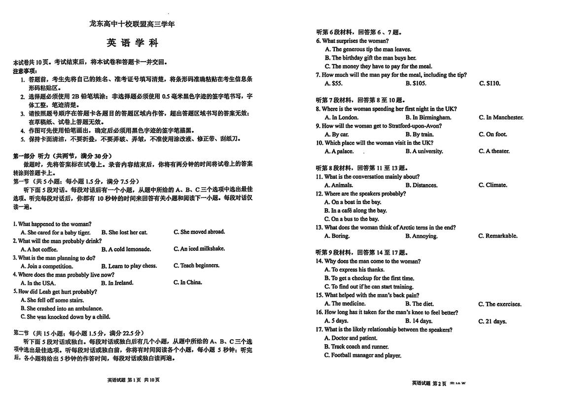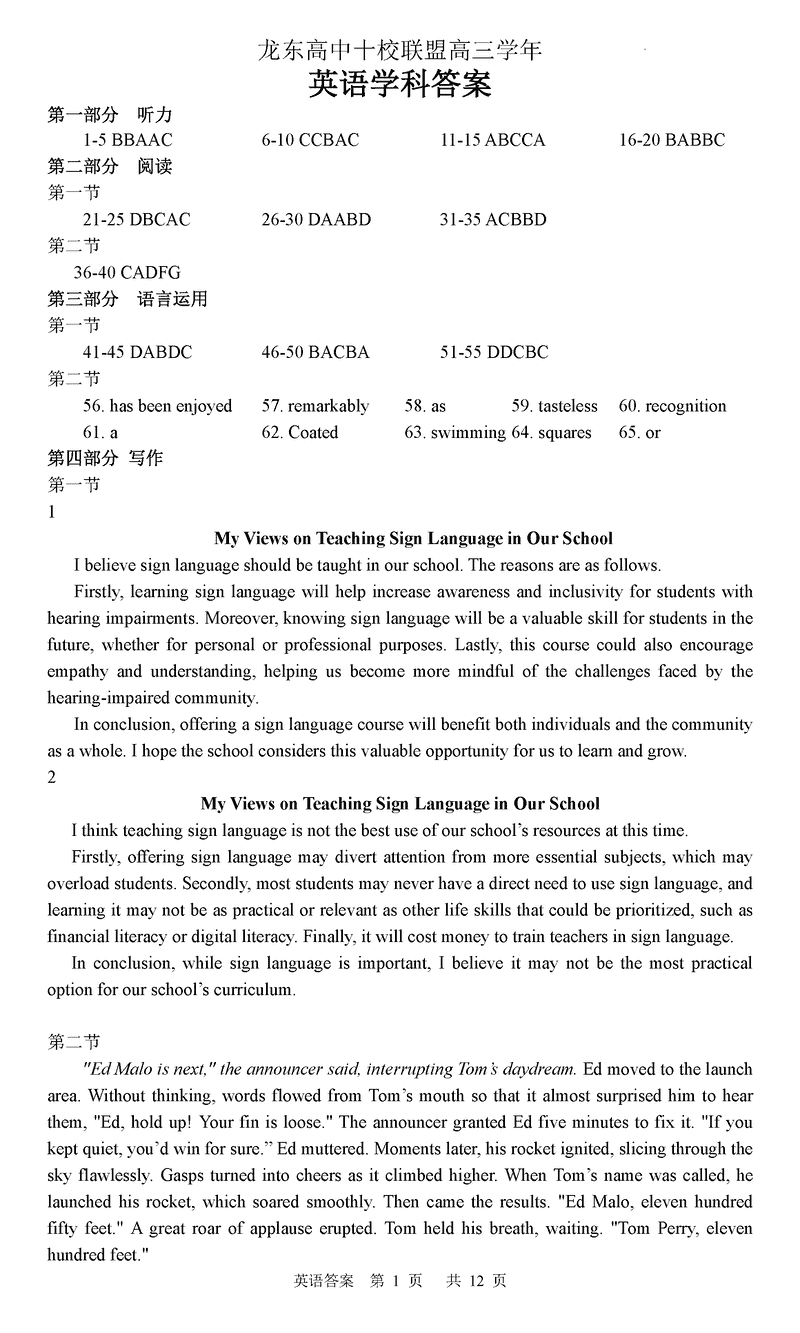 黑龙江龙东高中十校联盟2025年高三下学期2月适应性英语考试已于近日开考,为方便考生考后及时查看考试情况,查漏补缺、弥补不足,本文整理了试题答案解析相关信息!