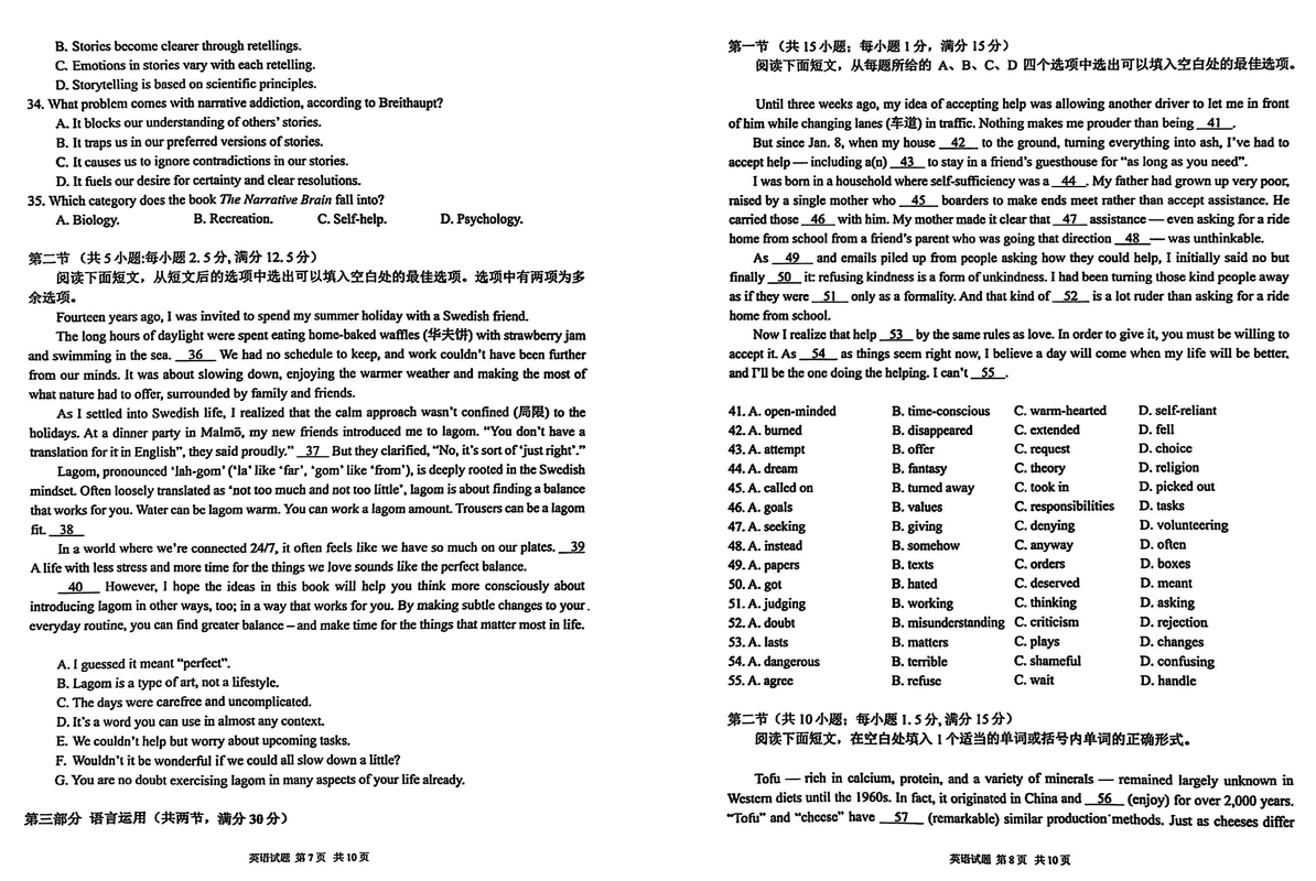 黑龙江龙东高中十校联盟2025年高三下学期2月适应性英语试题及答案