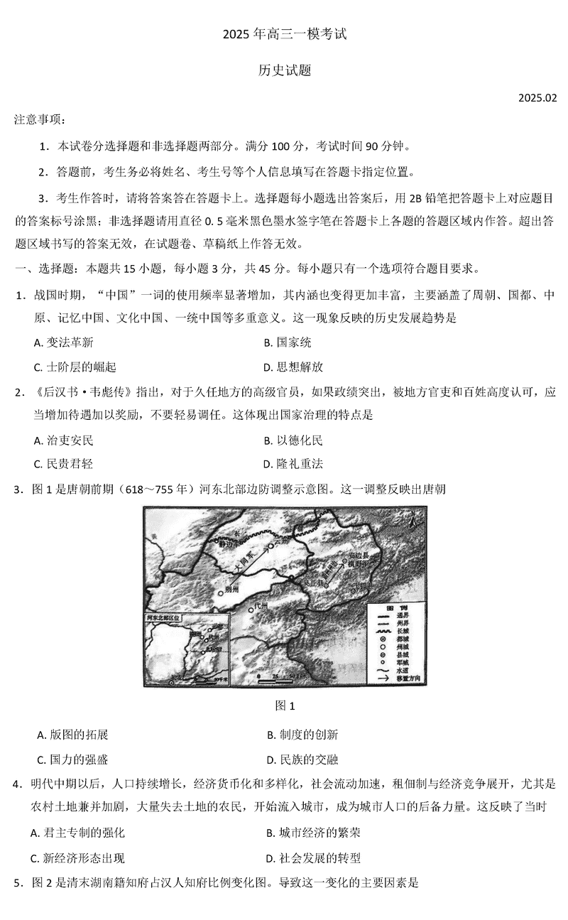 山东菏泽2025年高三一模历史试题及答案 时间:2025-02-27 山东 文综试题 山东菏泽2025年高三一模历史考试已于近日开考,为方便考生考后及时查看考试情况,查漏补缺、弥补不足,本文整理了试题答案解析相关信息! 汇总:山东菏泽2025年高三一模考试试题及答案汇总 历史试题及答案解析