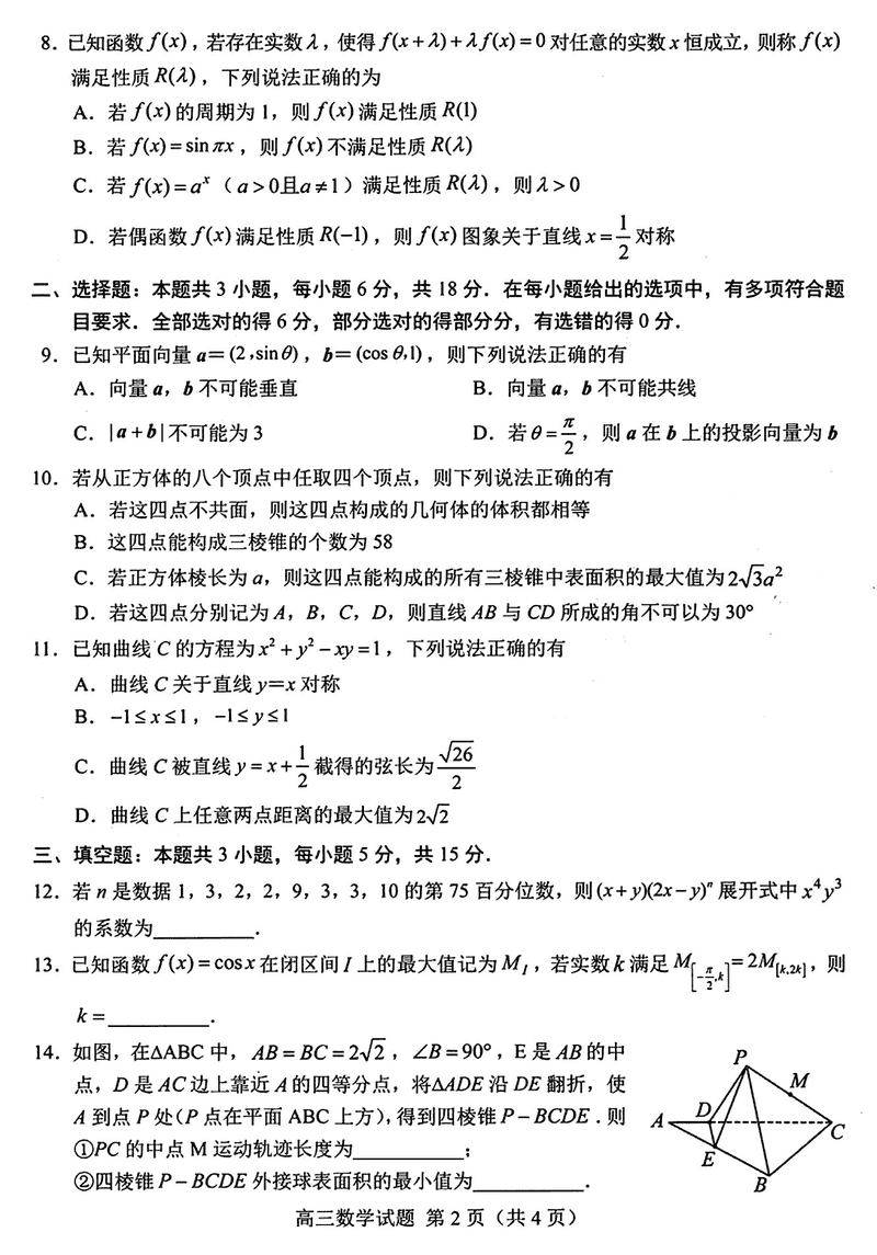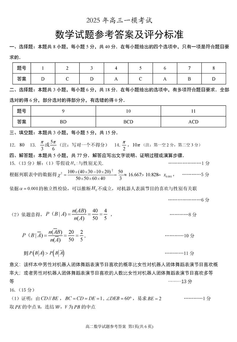 山东菏泽2025年高三一模数学试题及答案 时间:2025-02-27 山东 数学试题 山东菏泽2025年高三一模数学考试已于近日开考,为方便考生考后及时查看考试情况,查漏补缺、弥补不足,本文整理了试题答案解析相关信息! 汇总:山东菏泽2025年高三一模考试试题及答案汇总 数学试题及答案解析