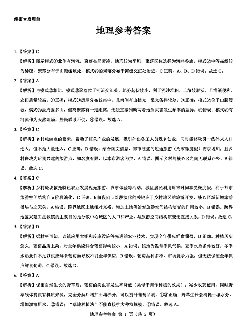 地理试题及答案解析