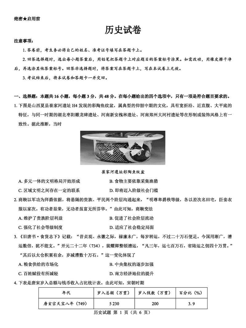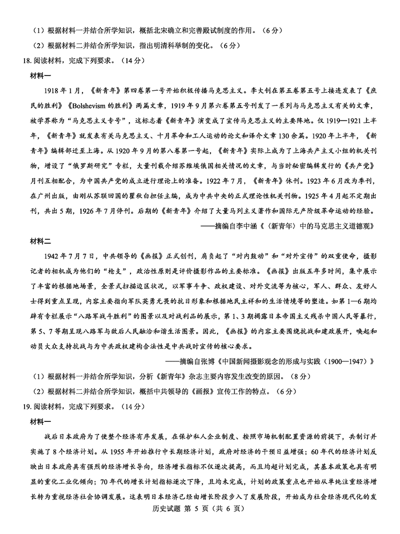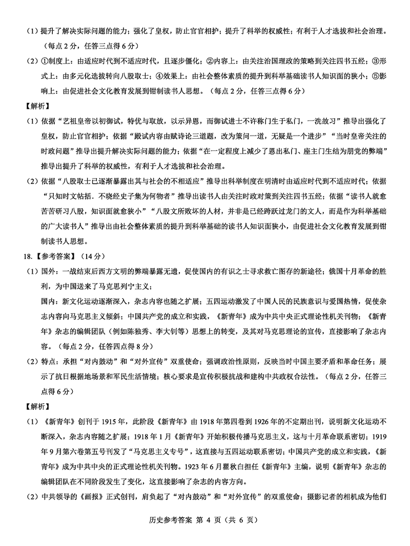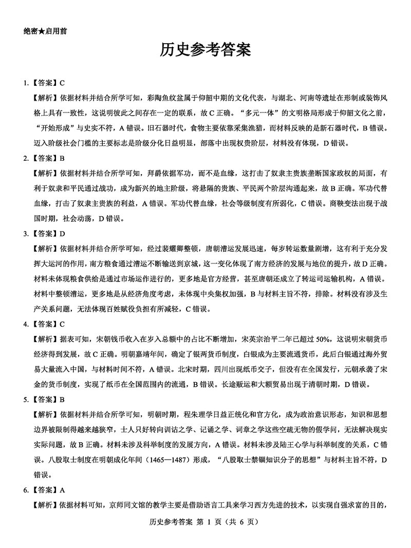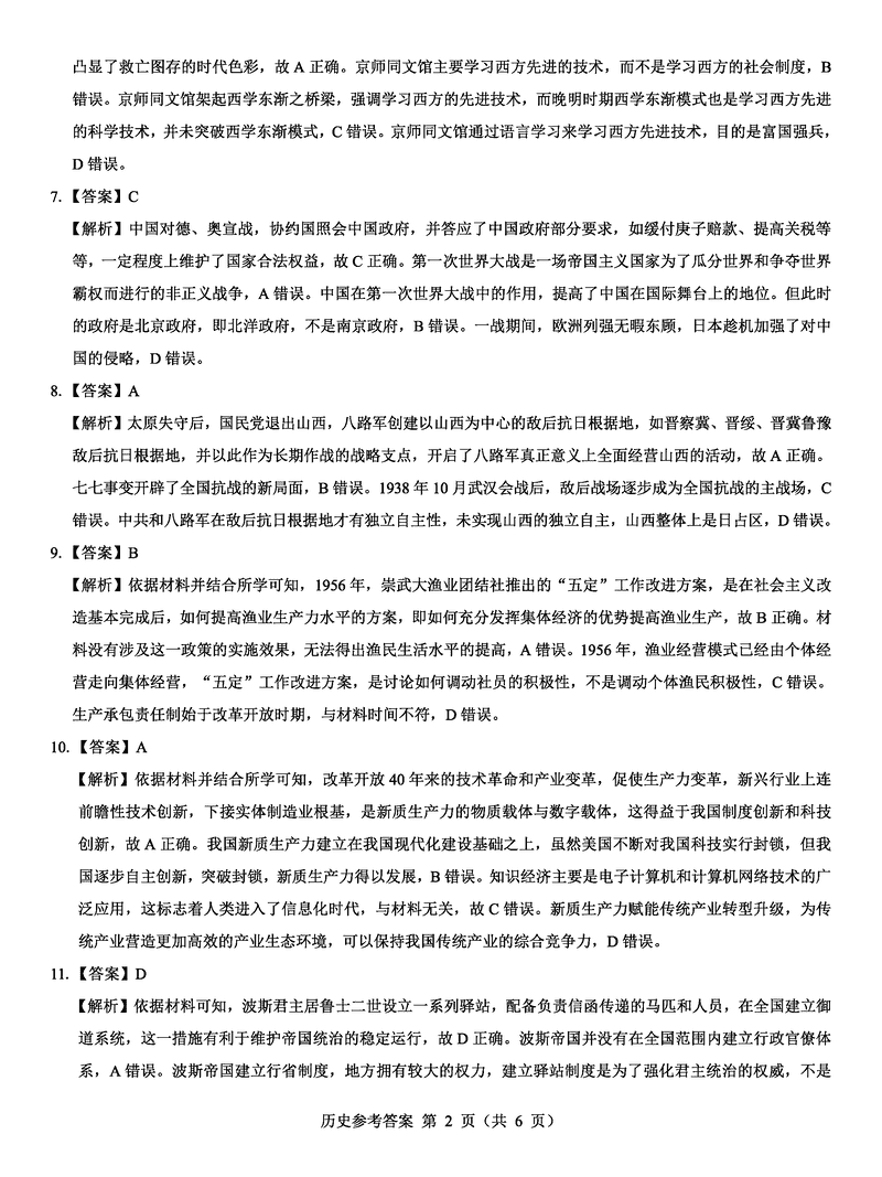 西北名校教研联盟2025届高三下学期2月联考历史试题及答案