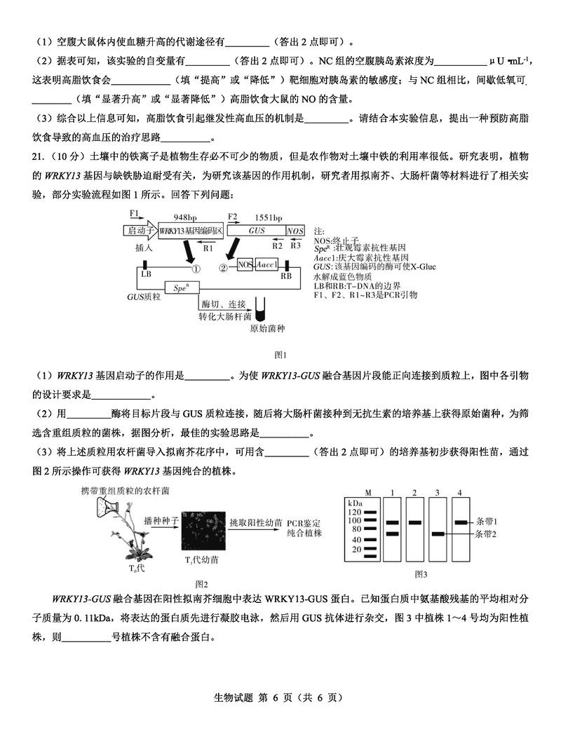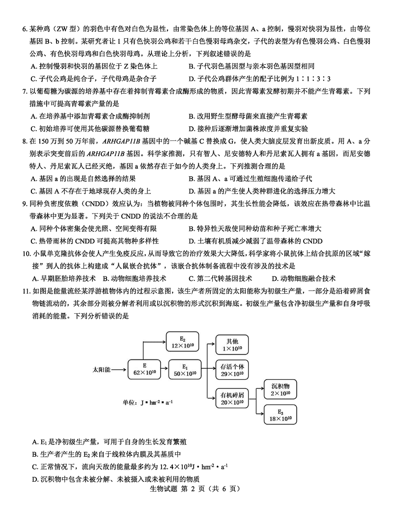 西北名校教研联盟2025届高三下学期2月联考生物试题及答案