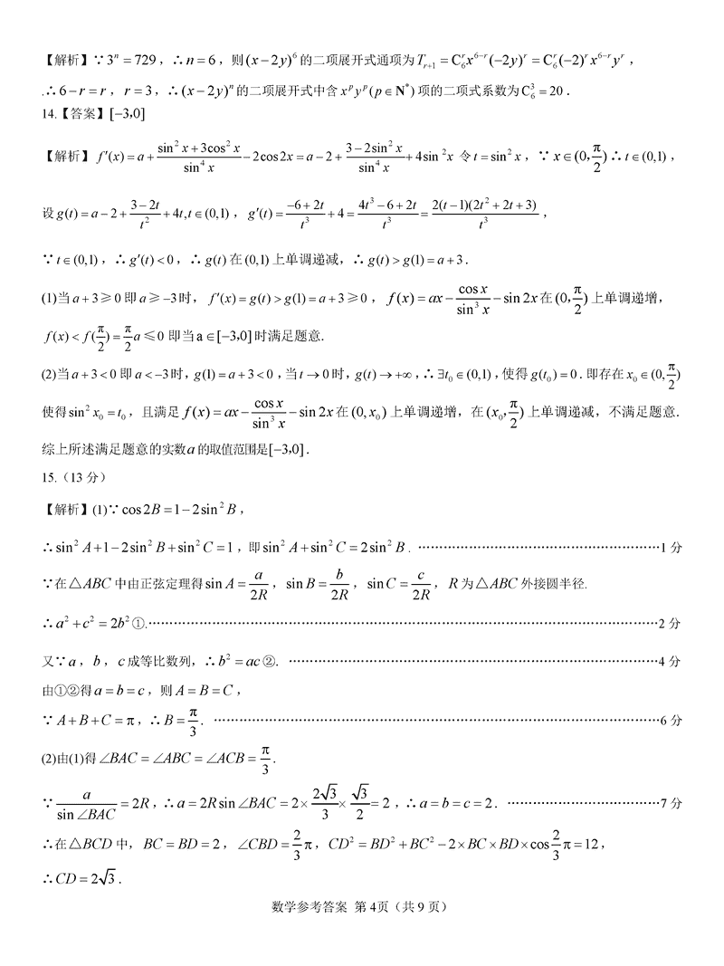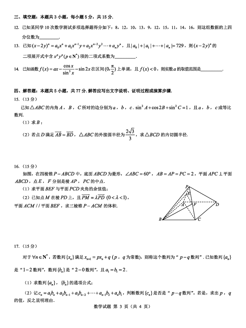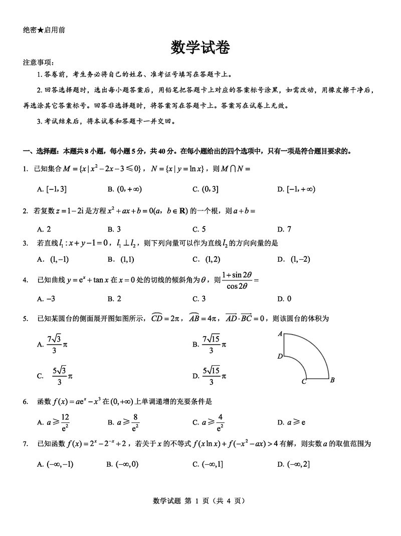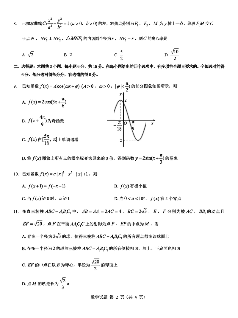 西北名校教研联盟2025届高三下学期2月联考数学试题及答案
