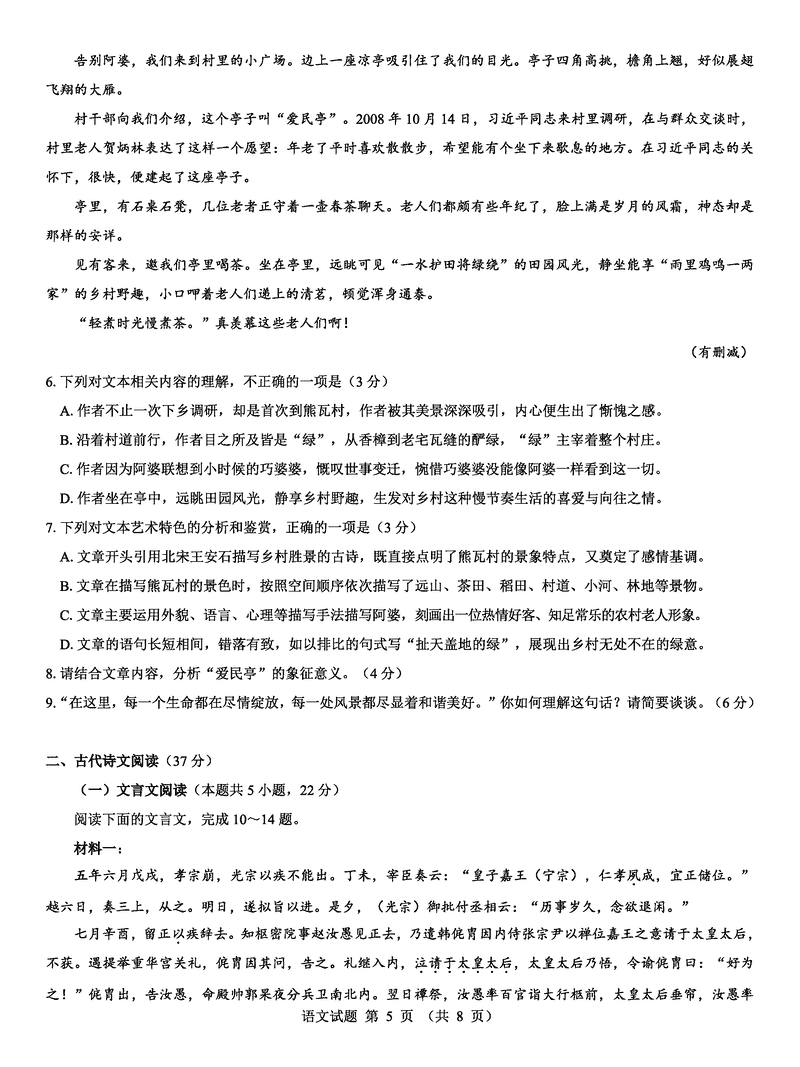 语文试题及答案解析