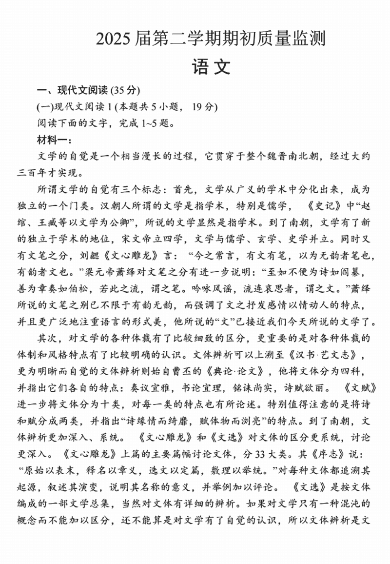 江苏省新高考基地学校2025届高三下学期期初质量监测语文试题及答案