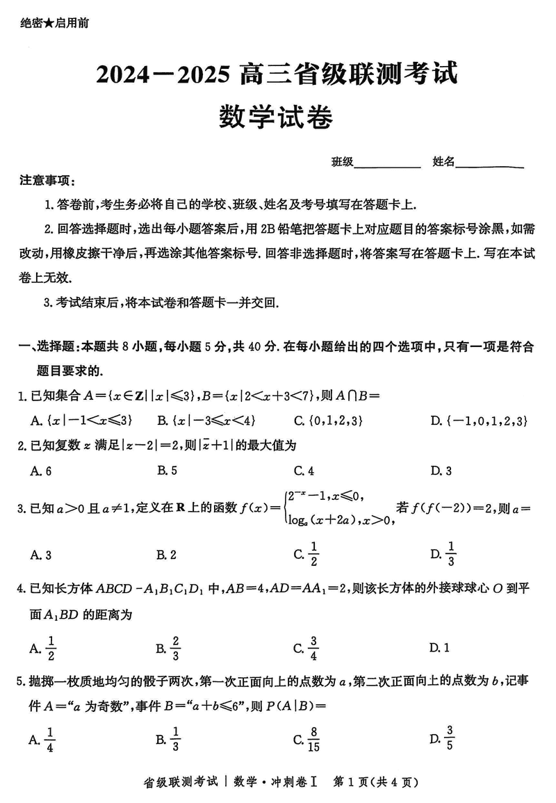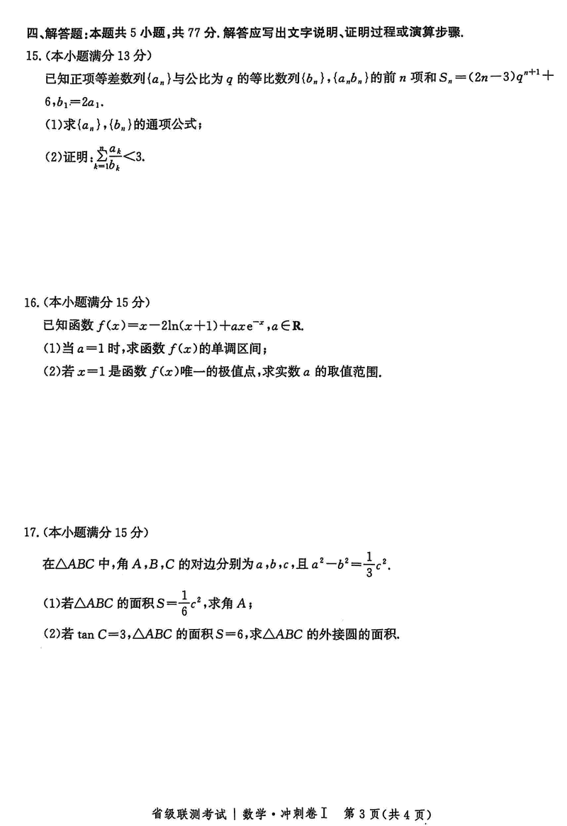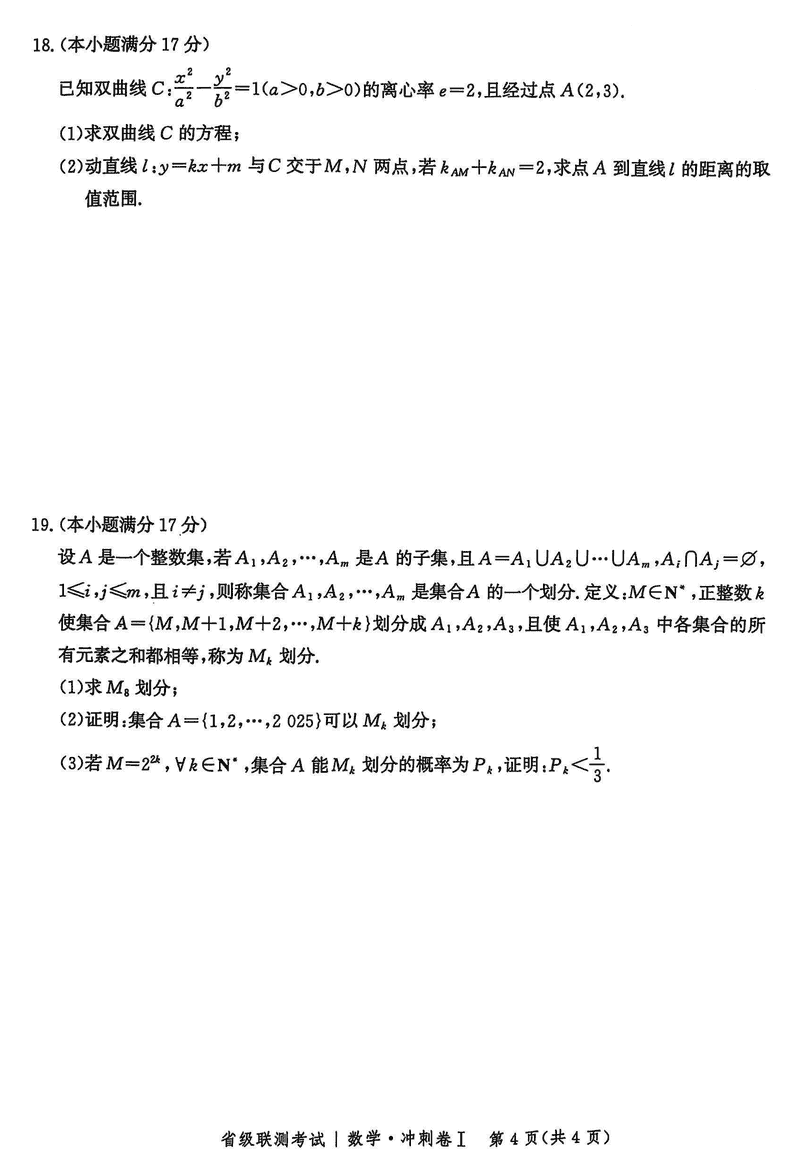 河北省2024-2025高三省级联测冲刺卷I数学试题及答案