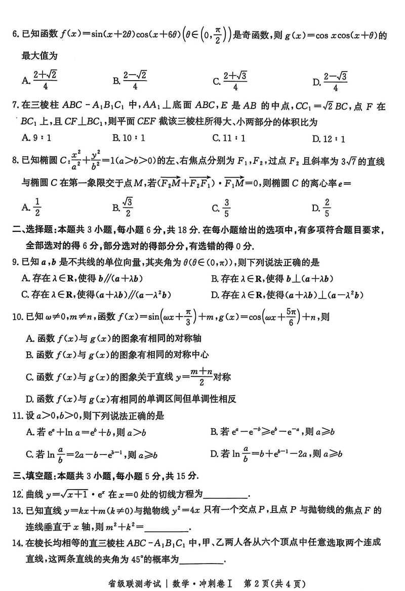 河北省2024-2025高三省级联测冲刺卷I数学考试已于近日开考,为方便考生考后及时查看考试情况,查漏补缺、弥补不足,本文整理了试题答案解析相关信息!
