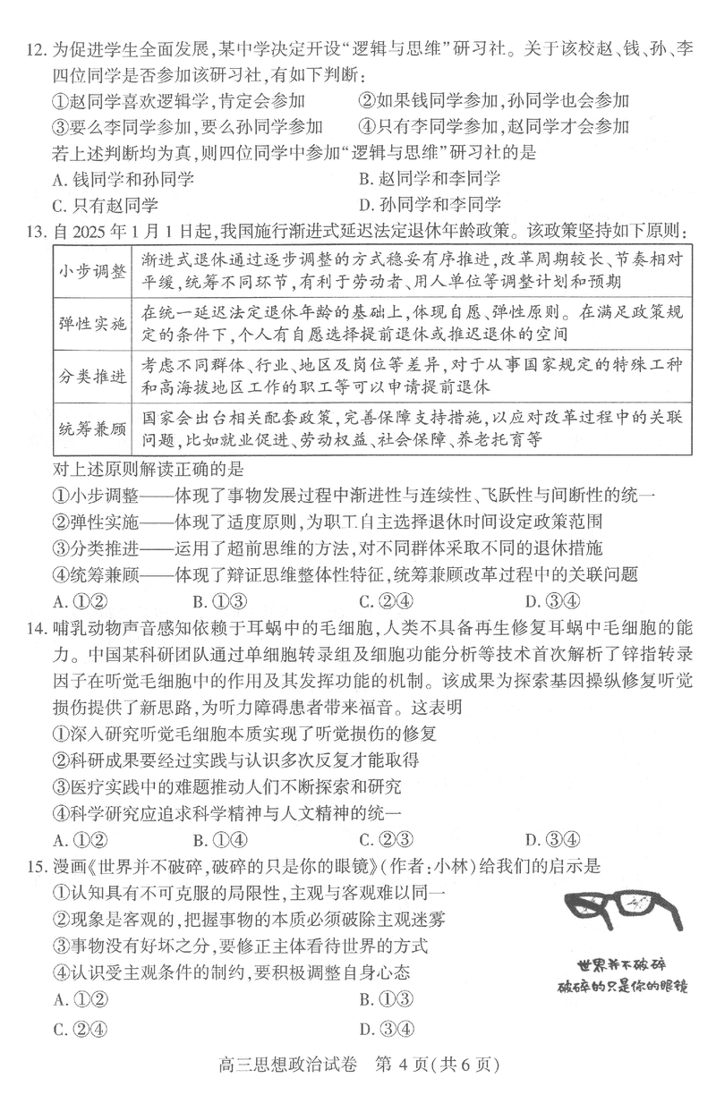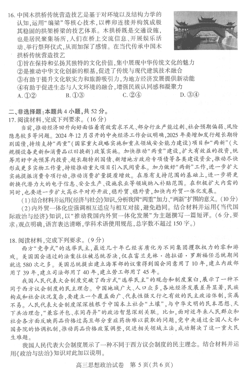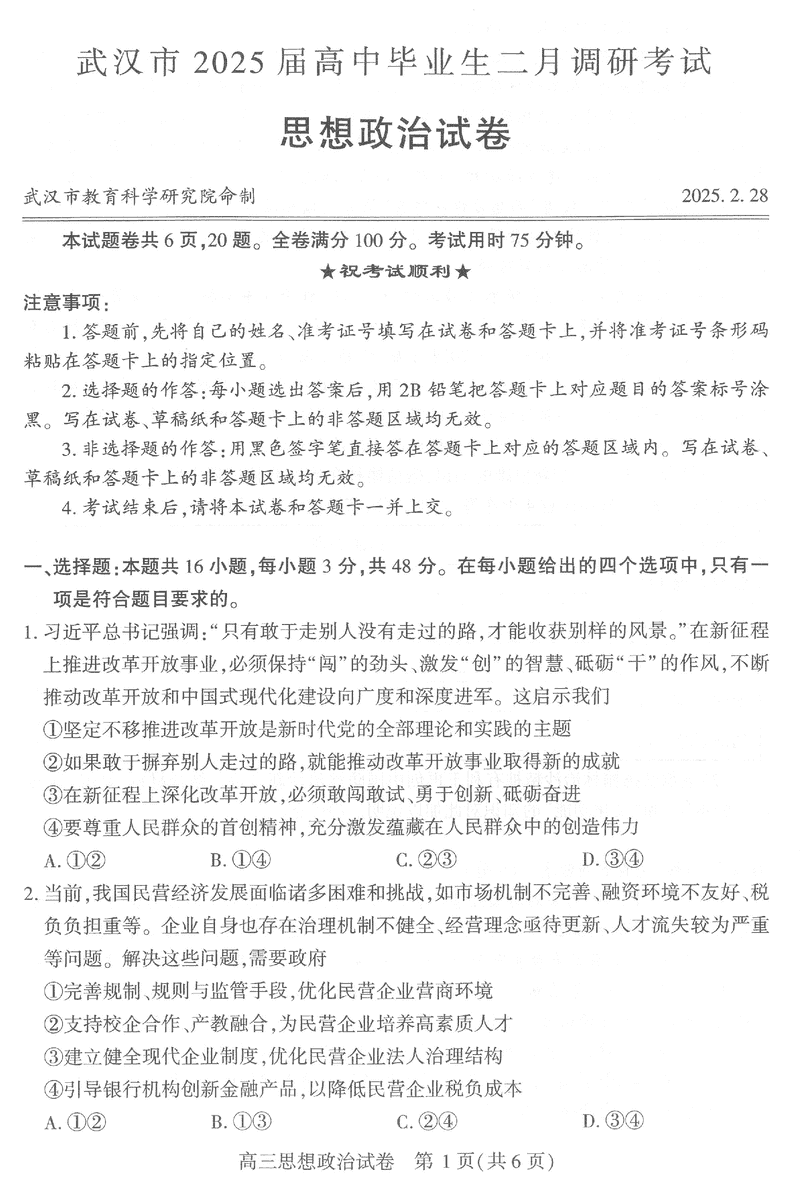 武汉市2025届高中毕业生二月调研政治试题及答案 时间:2025-03-01 湖北 文综试题 武汉市2025届高中毕业生二月调研政治考试已于近日开考,为方便考生考后及时查看考试情况,查漏补缺、弥补不足,本文整理了试题答案解析相关信息! 汇总:武汉市2025届高中毕业生二月调研考试试题及答案汇总 政治试题及答案解析