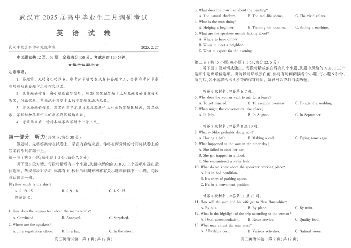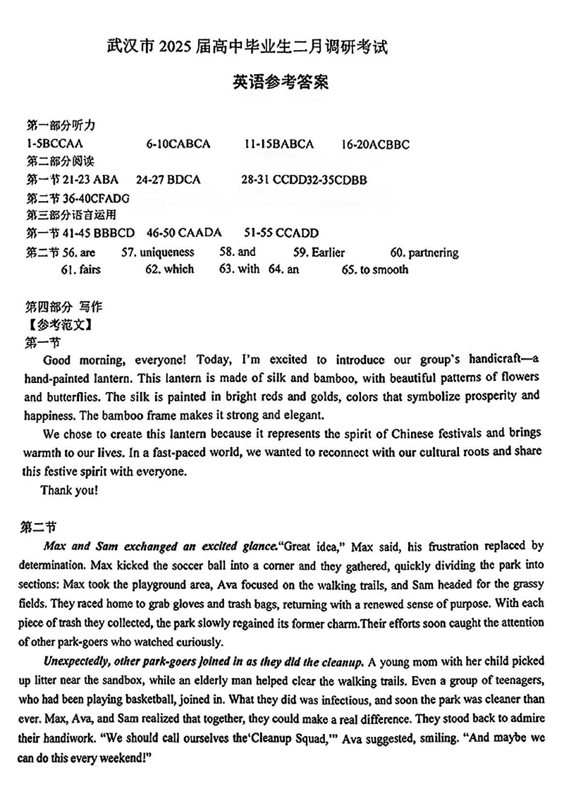 武汉市2025届高中毕业生二月调研英语试题及答案 时间:2025-03-01 湖北 英语试题 武汉市2025届高中毕业生二月调研英语考试已于近日开考,为方便考生考后及时查看考试情况,查漏补缺、弥补不足,本文整理了试题答案解析相关信息! 汇总:武汉市2025届高中毕业生二月调研考试试题及答案汇总 英语试题及答案解析