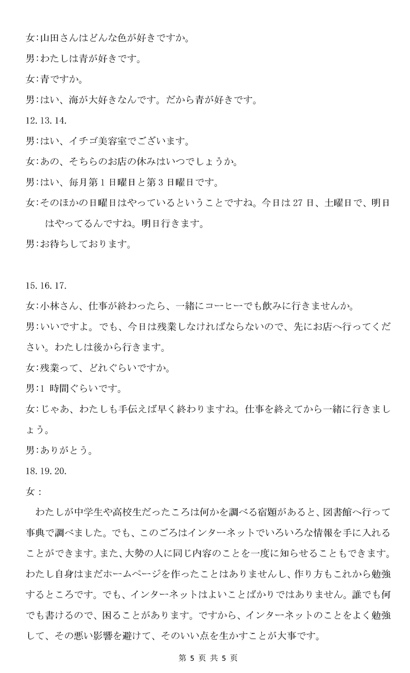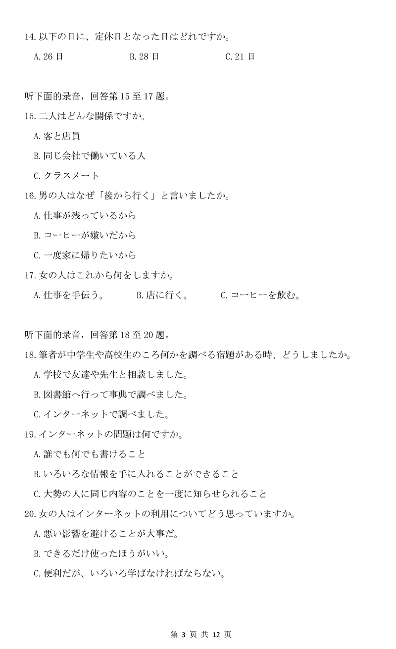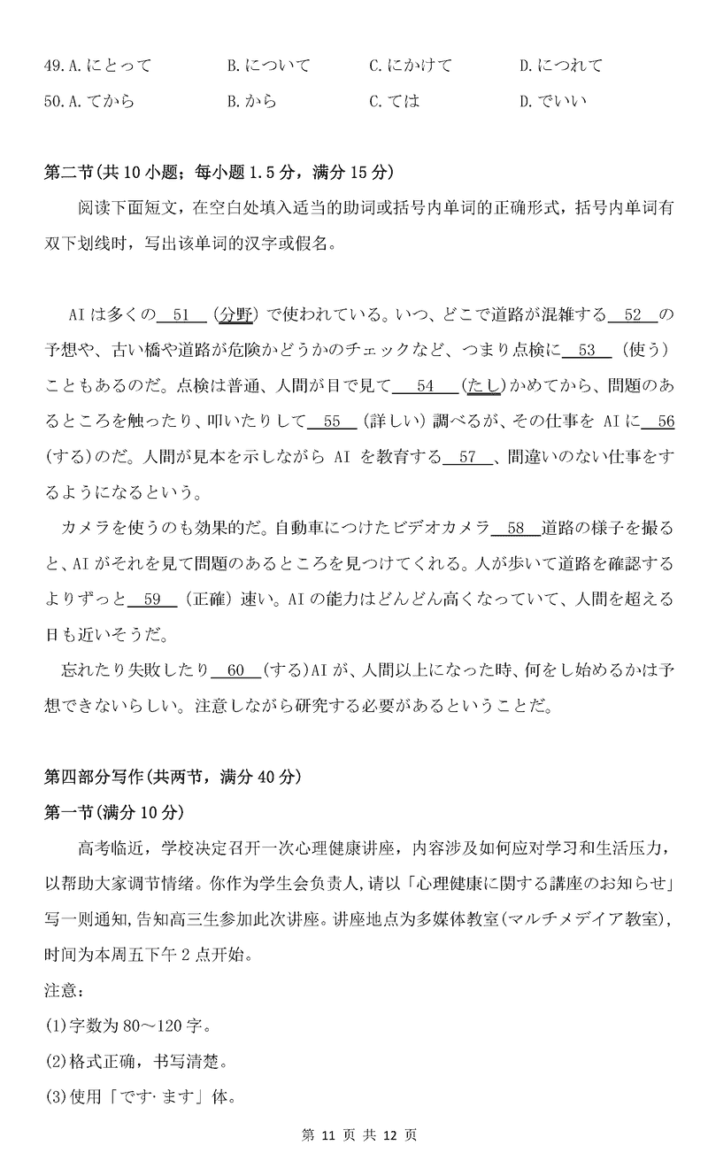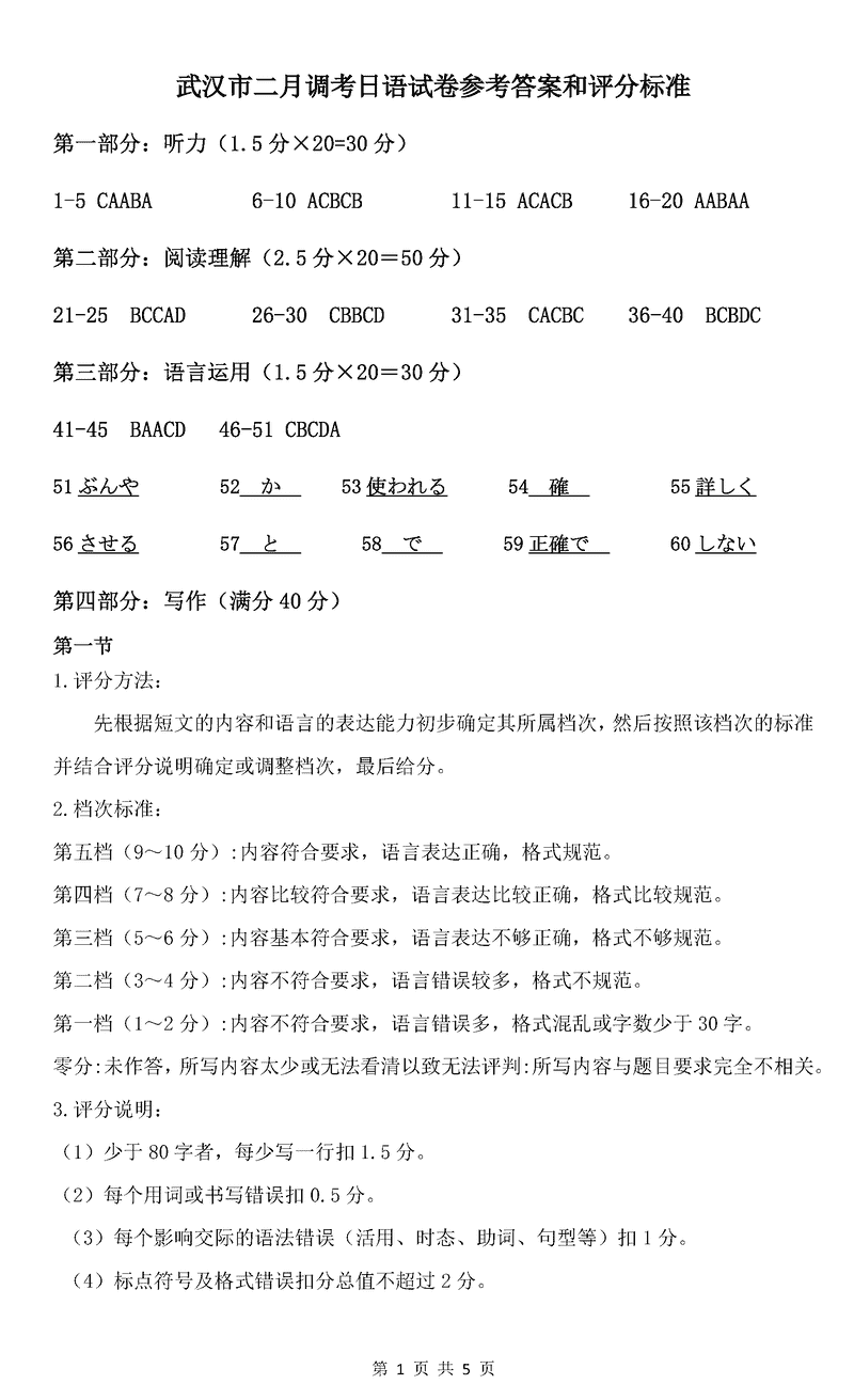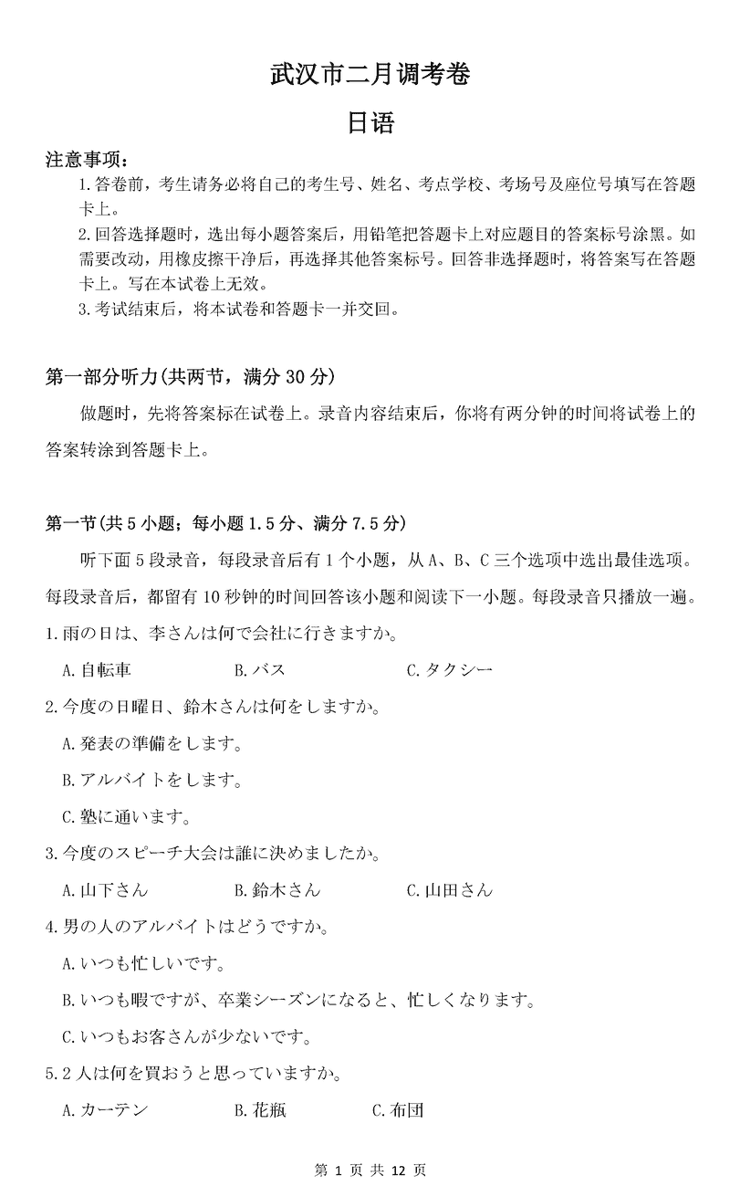 武汉市2025届高中毕业生二月调研日语试题及答案 时间:2025-03-01 湖北 英语试题 武汉市2025届高中毕业生二月调研日语考试已于近日开考,为方便考生考后及时查看考试情况,查漏补缺、弥补不足,本文整理了试题答案解析相关信息! 汇总:武汉市2025届高中毕业生二月调研考试试题及答案汇总 日语试题及答案解析