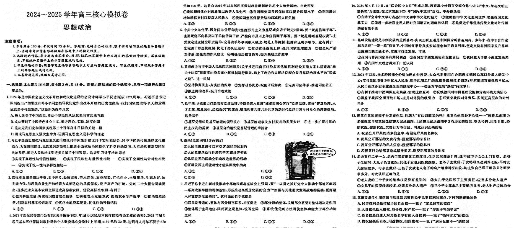 湖北黄冈2025届高三下学期核心预测卷政治试题及答案 时间:2025-03-01 湖北 文综试题 湖北黄冈2025届高三下学期核心预测卷政治考试已于近日开考,为方便考生考后及时查看考试情况,查漏补缺、弥补不足,本文整理了试题答案解析相关信息! 汇总:湖北黄冈2025届高三下学期核心预测卷试题及答案汇总 政治试题及答案解析
