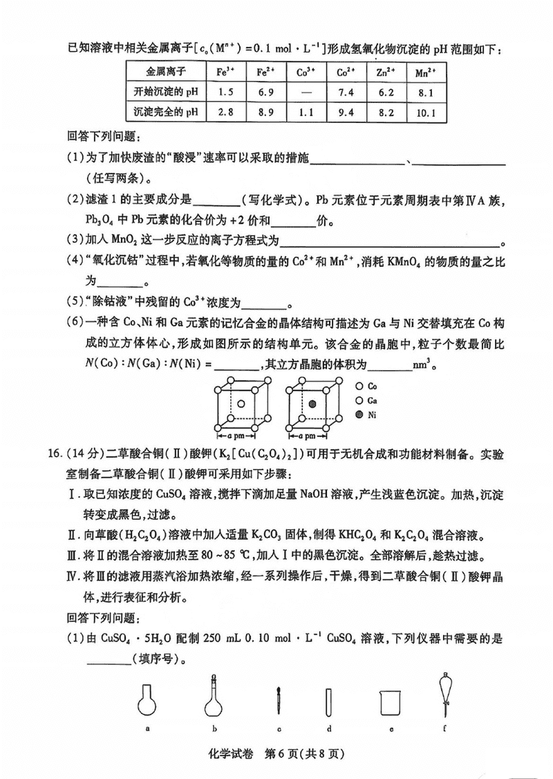 滁州市2025届高三下学期第一次教学质量监测化学考试已于近日开考,为方便考生考后及时查看考试情况,查漏补缺、弥补不足,本文整理了试题答案解析相关信息!