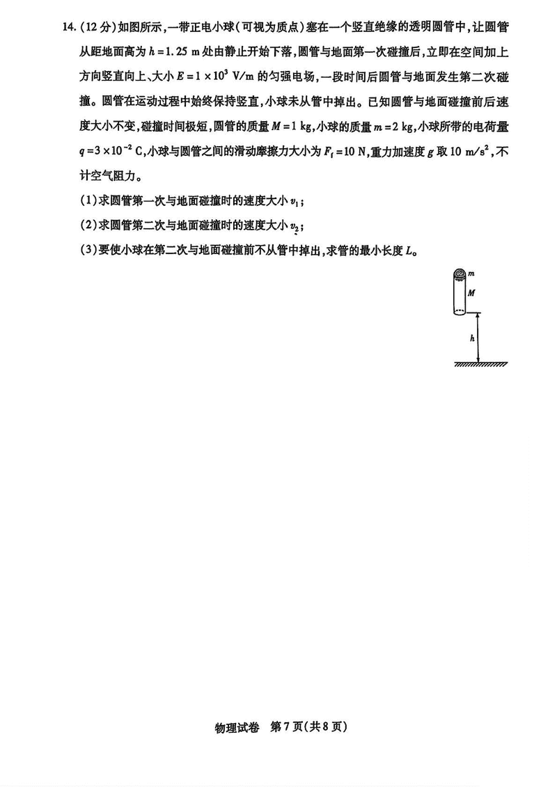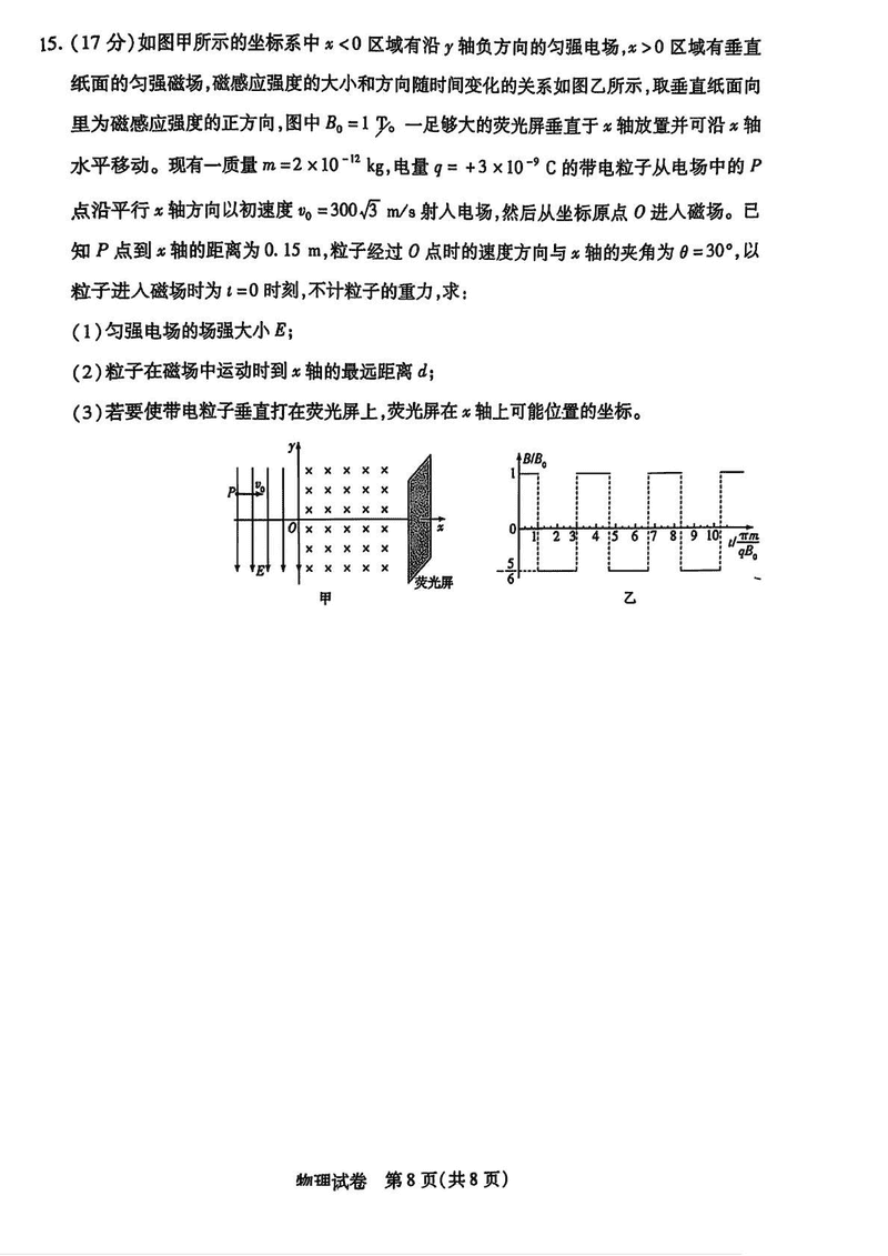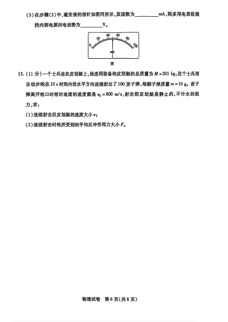 滁州市2025届高三下学期第一次教学质量监测物理试题及答案