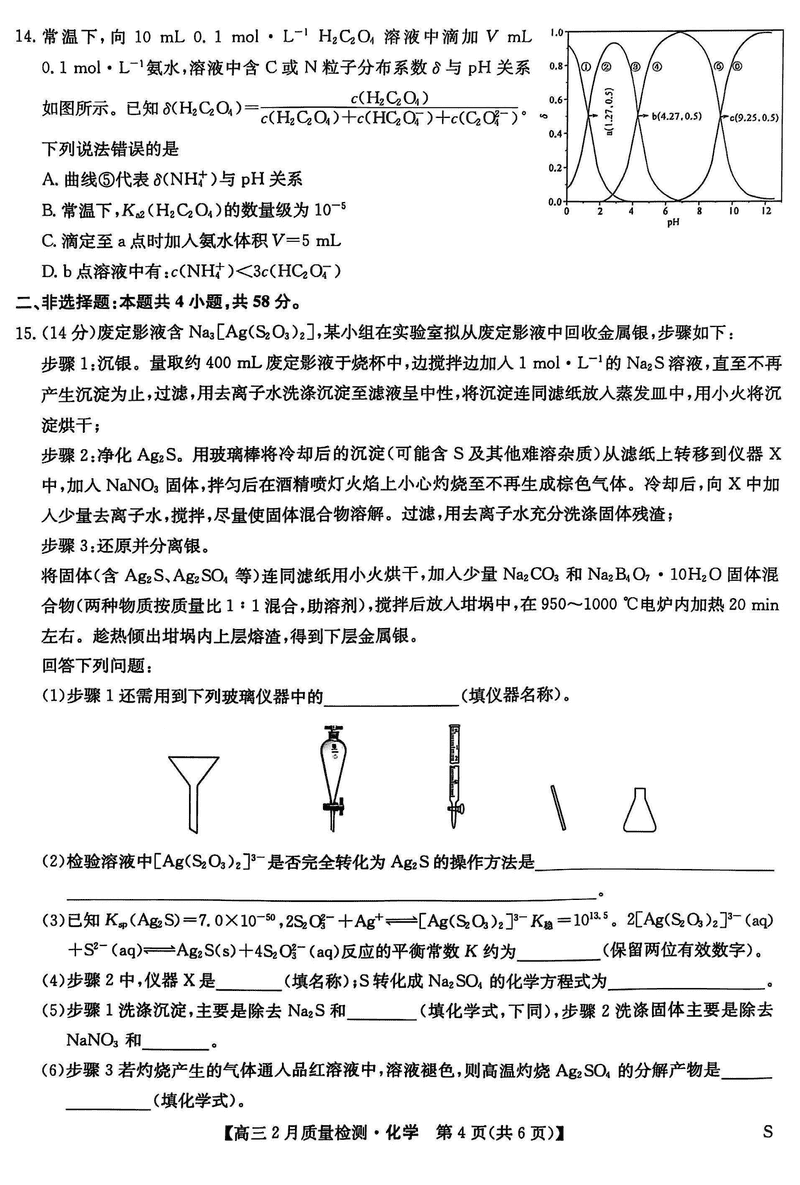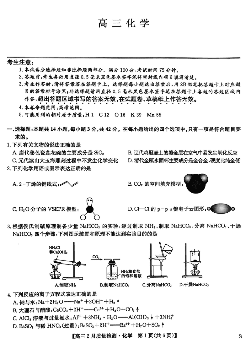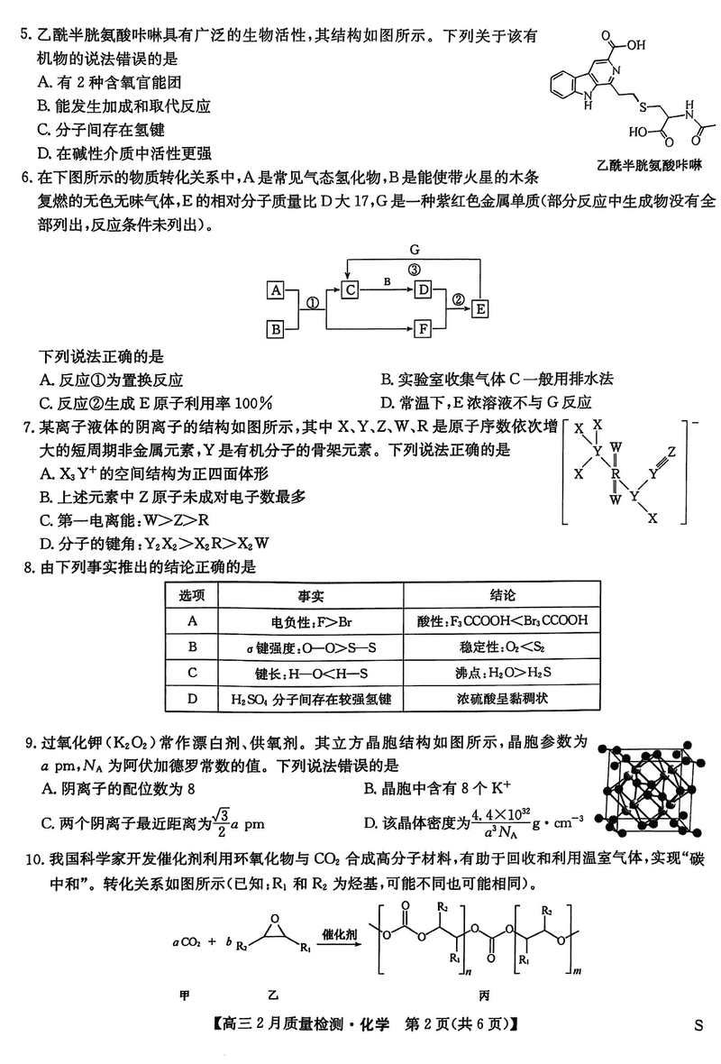 九师联盟2025届高三2月质量检测化学试题及答案 时间:2025-03-01 理综试题 九师联盟2025届高三2月质量检测化学考试已于近日开考,为方便考生考后及时查看考试情况,查漏补缺、弥补不足,本文整理了试题答案解析相关信息! 汇总:九师联盟2025届高三2月质量检测试题及答案汇总 化学试题及答案解析