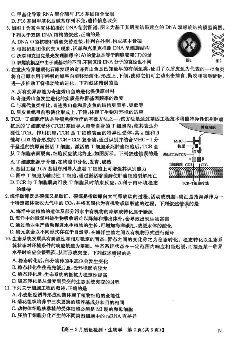 九师联盟2025届高三2月质量检测生物试题及答案 时间:2025-03-01 理综试题 九师联盟2025届高三2月质量检测生物考试已于近日开考,为方便考生考后及时查看考试情况,查漏补缺、弥补不足,本文整理了试题答案解析相关信息! 汇总:九师联盟2025届高三2月质量检测试题及答案汇总 生物试题及答案解析