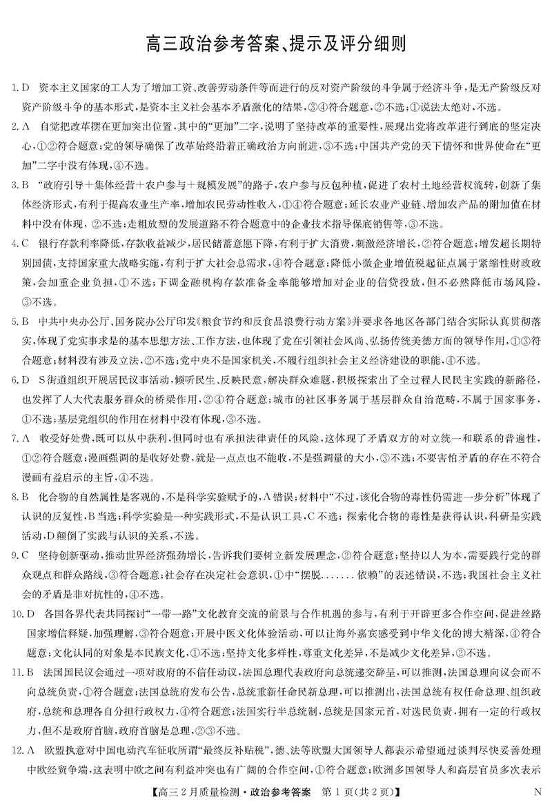 九师联盟2025届高三2月质量检测政治试题及答案 时间:2025-03-01 文综试题 九师联盟2025届高三2月质量检测政治考试已于近日开考,为方便考生考后及时查看考试情况,查漏补缺、弥补不足,本文整理了试题答案解析相关信息! 汇总:九师联盟2025届高三2月质量检测试题及答案汇总 政治试题及答案解析