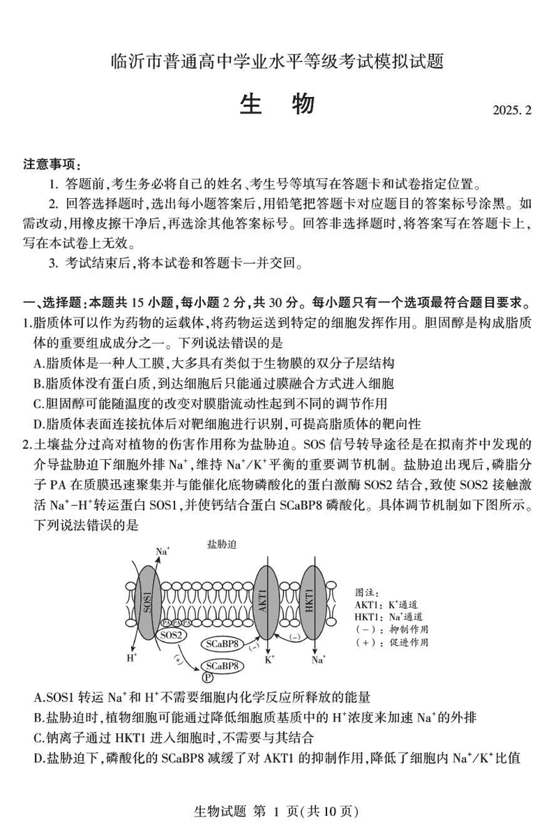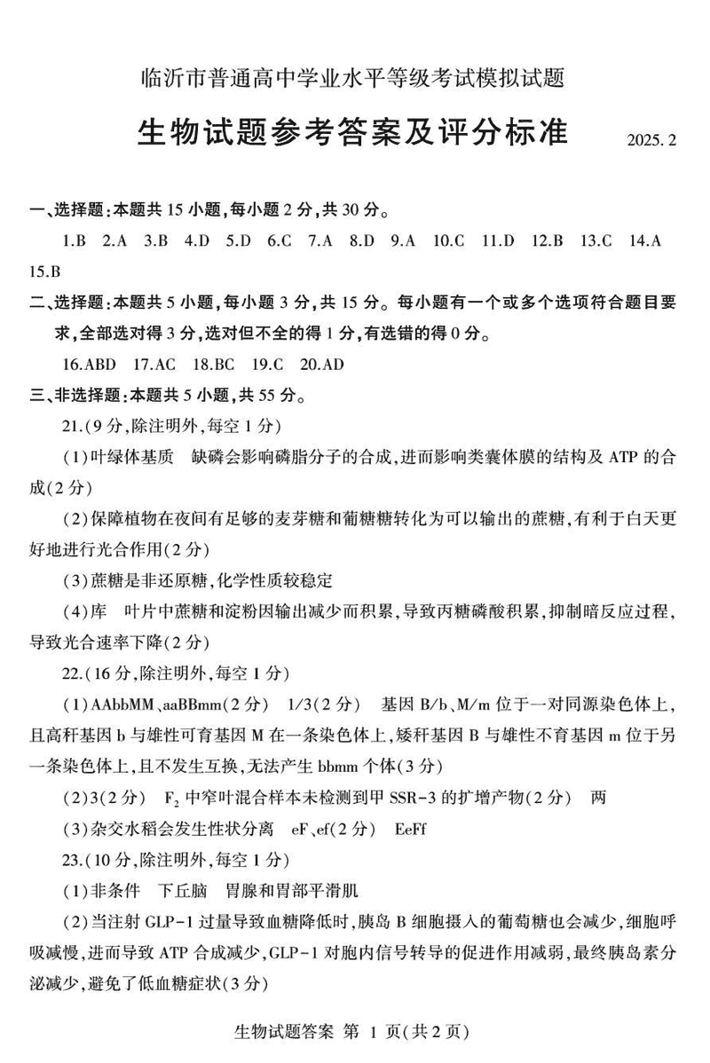 山东临沂2025届高三一模生物试题及答案 时间:2025-03-02 山东 理综试题 山东临沂2025届高三一模生物考试已于近日开考,为方便考生考后及时查看考试情况,查漏补缺、弥补不足,本文整理了试题答案解析相关信息! 汇总:山东临沂2025届高三一模试题及答案汇总 生物试题及答案解析