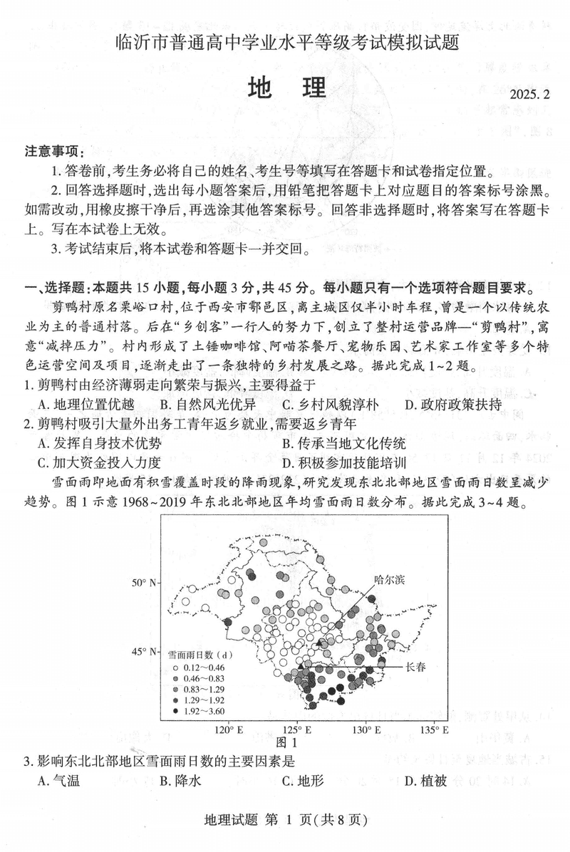 山东临沂2025届高三一模地理试题及答案 时间:2025-03-02 山东 文综试题 山东临沂2025届高三一模地理考试已于近日开考,为方便考生考后及时查看考试情况,查漏补缺、弥补不足,本文整理了试题答案解析相关信息! 汇总:山东临沂2025届高三一模试题及答案汇总 地理试题及答案解析