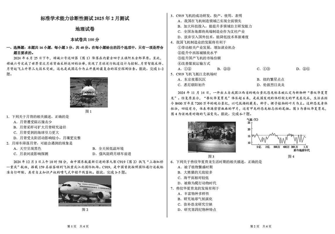 TDA2025年2月标准学术能力诊断性测试地理试题及答案