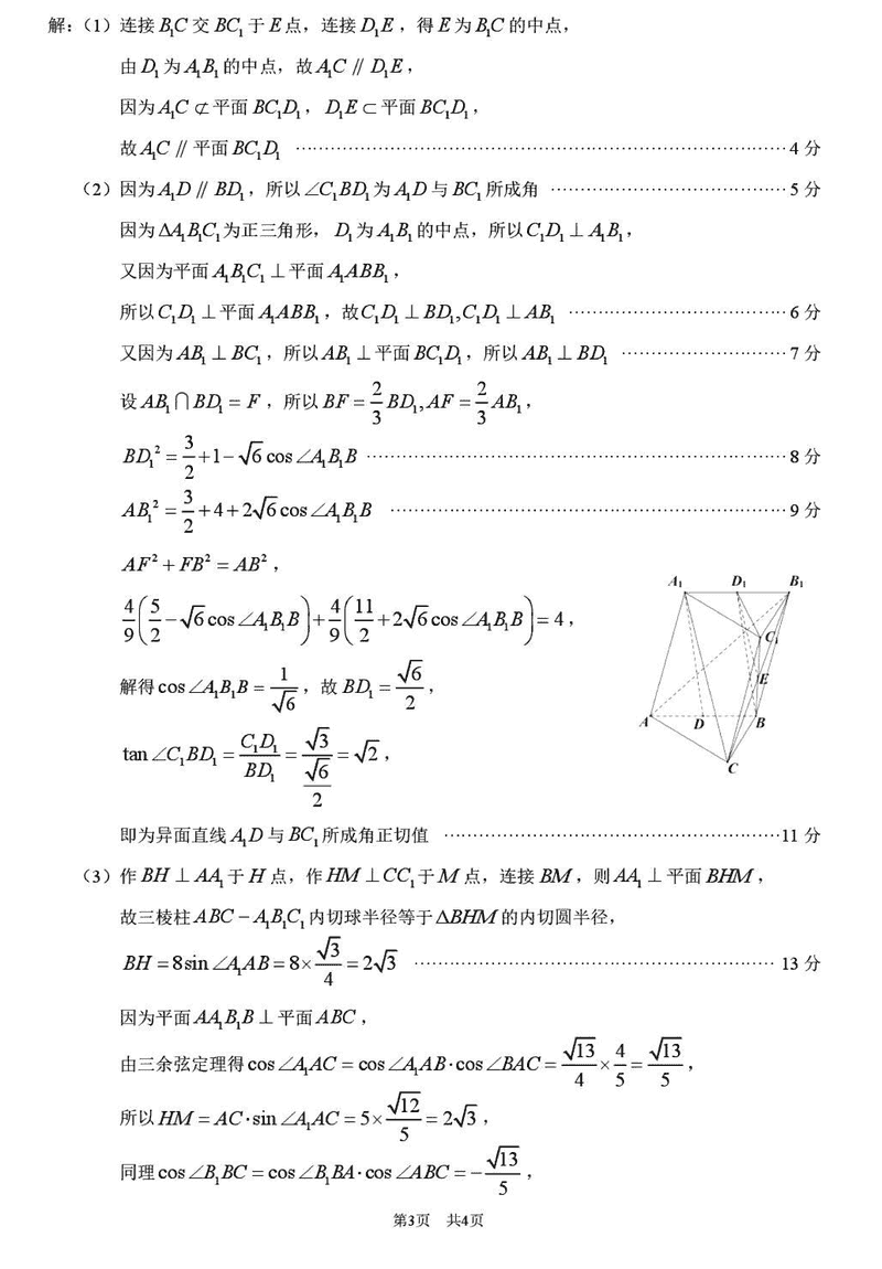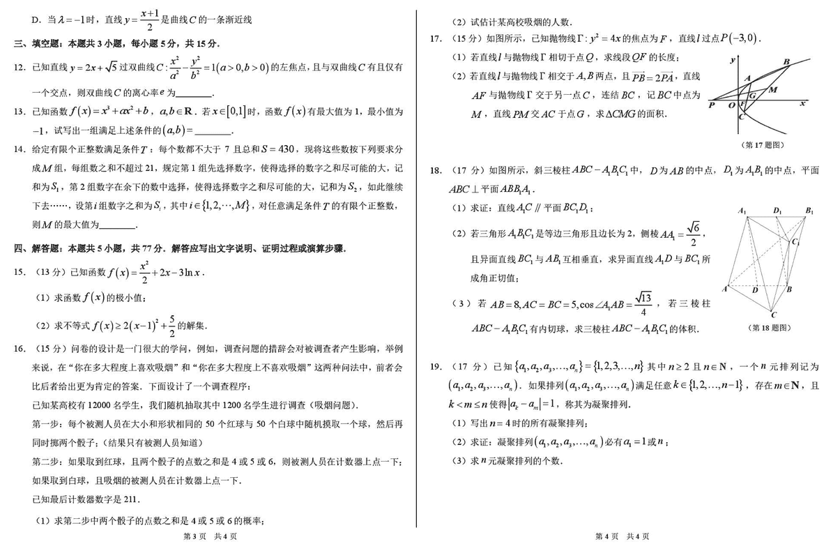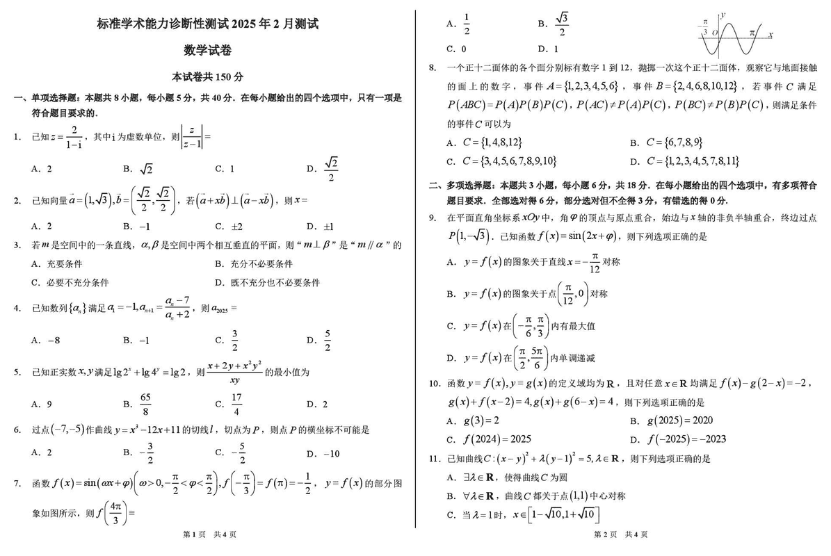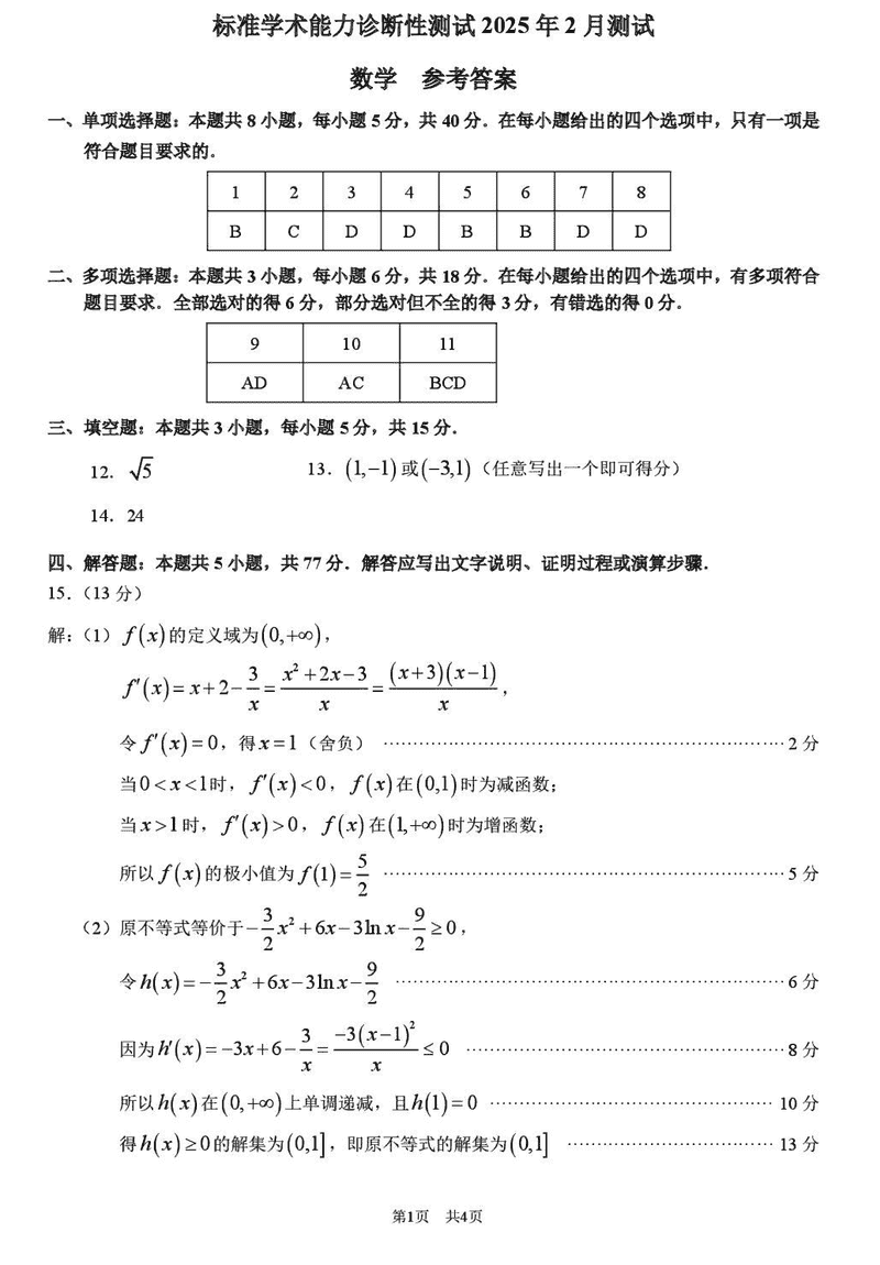 TDA2025年2月标准学术能力诊断性测试数学试题及答案