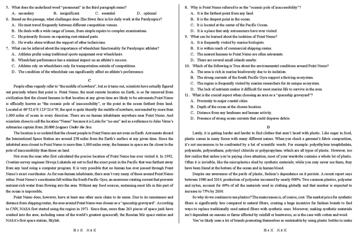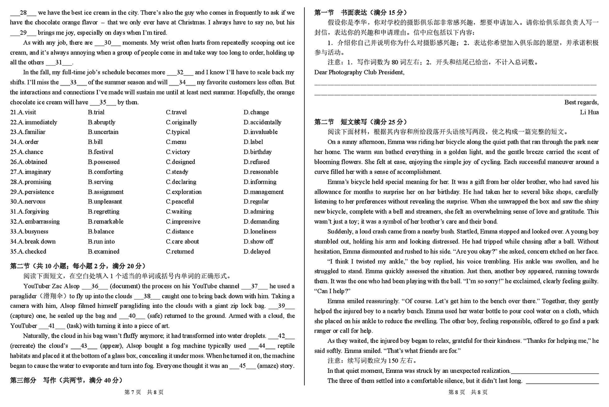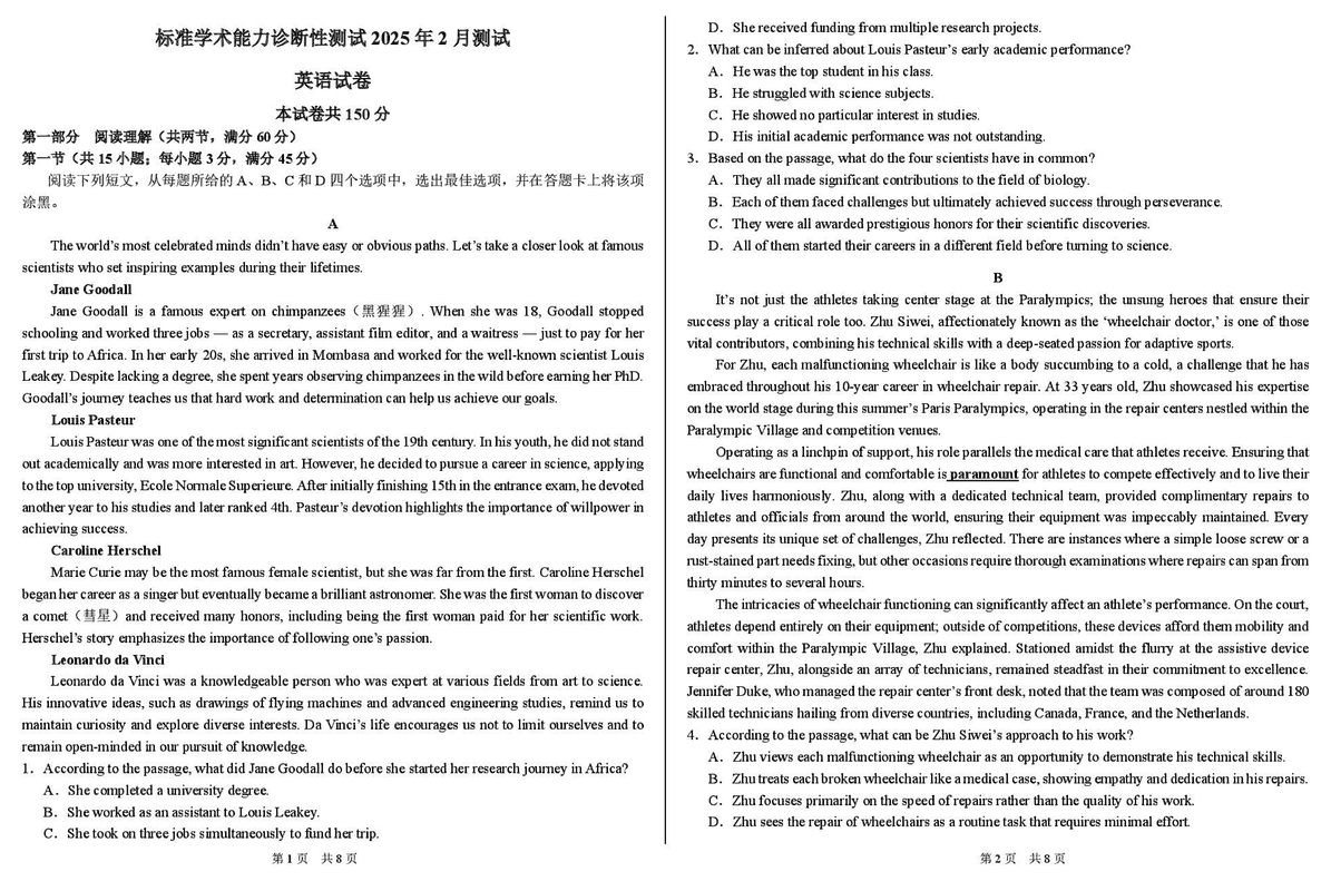 TDA2025年2月标准学术能力诊断性测试英语试题及答案