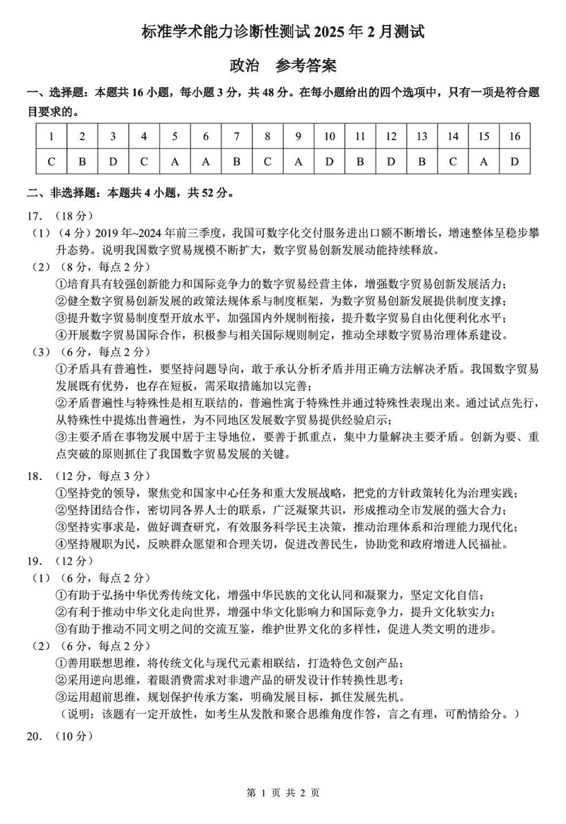 TDA2025年2月标准学术能力诊断性测试政治考试已于近日开考,为方便考生考后及时查看考试情况,查漏补缺、弥补不足,本文整理了试题答案解析相关信息!