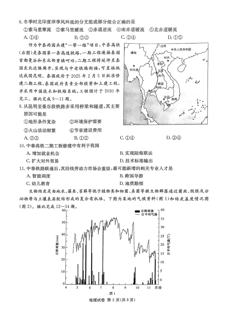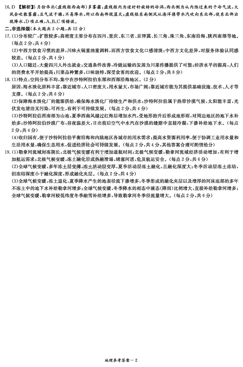 湖南省新高考教学教研联盟2025届第一次联考地理试题及答案