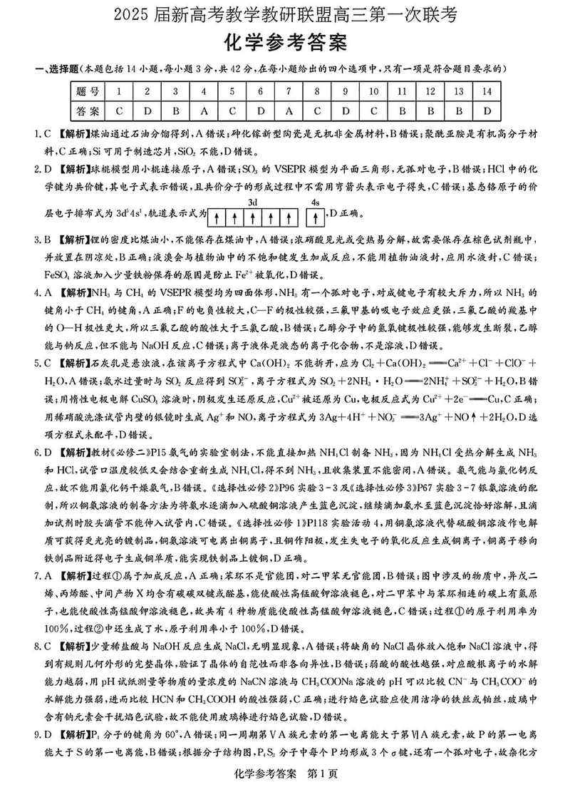 湖南省新高考教学教研联盟2025届第一次联考化学考试已于近日开考,为方便考生考后及时查看考试情况,查漏补缺、弥补不足,本文整理了试题答案解析相关信息!