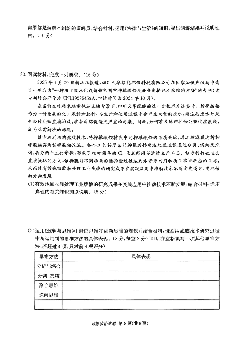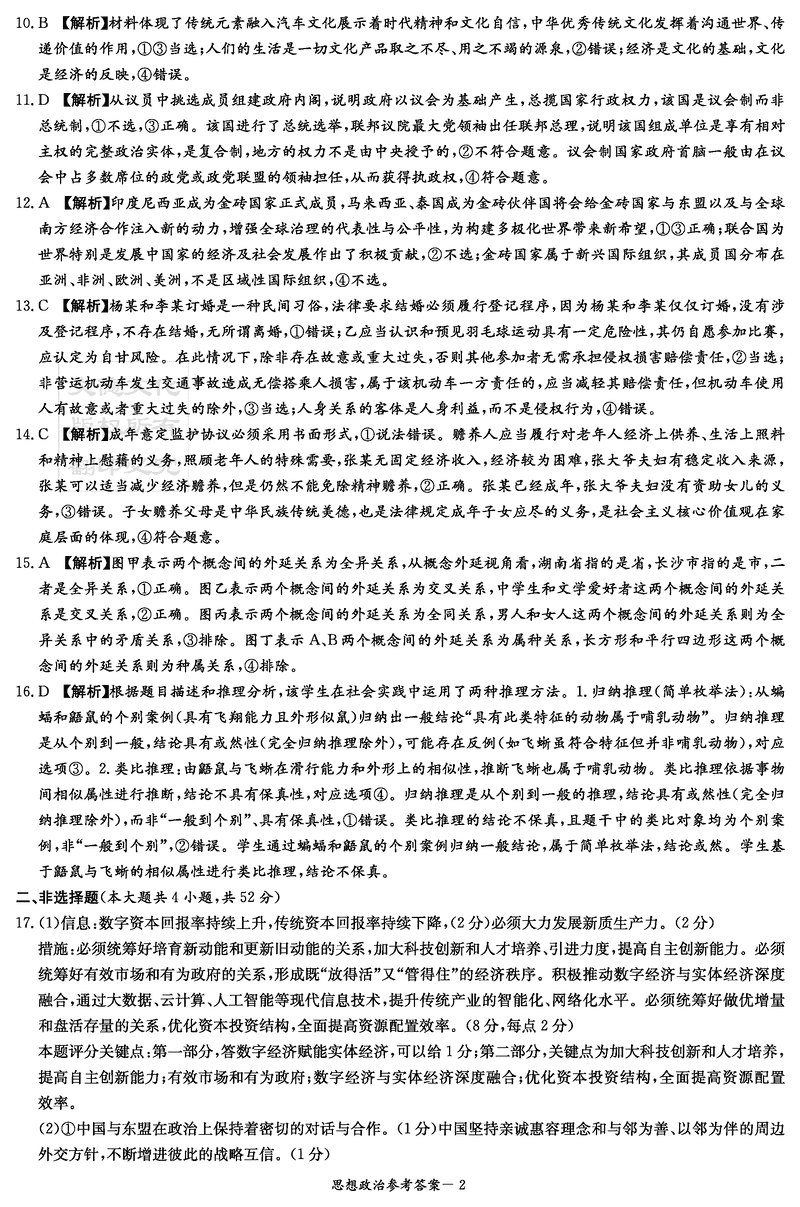 湖南省新高考教学教研联盟2025届第一次联考政治试题及答案