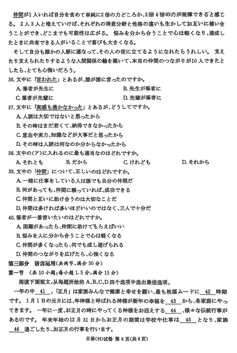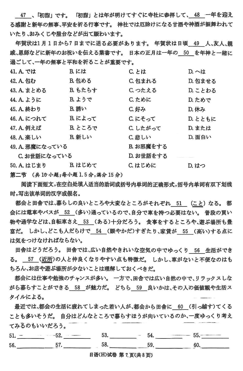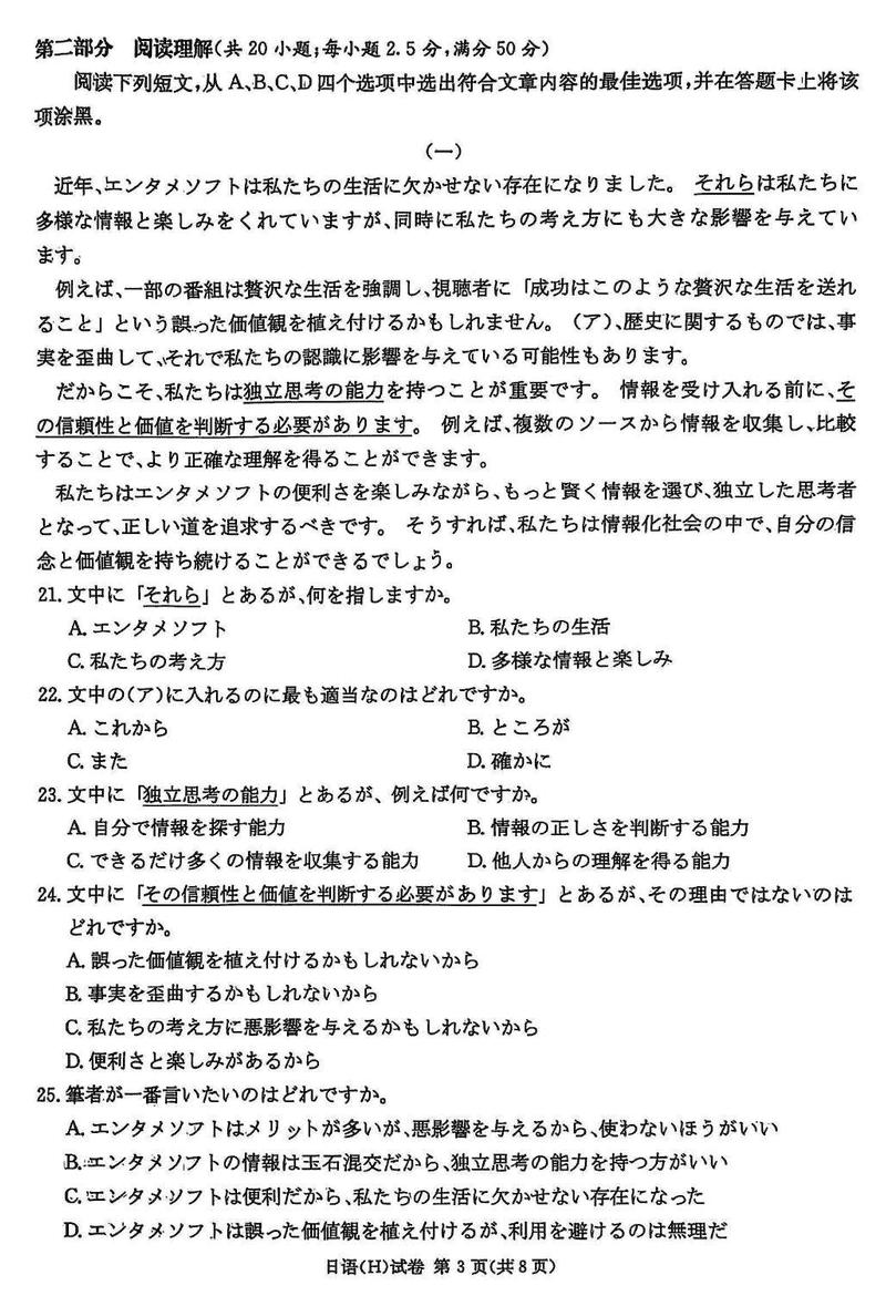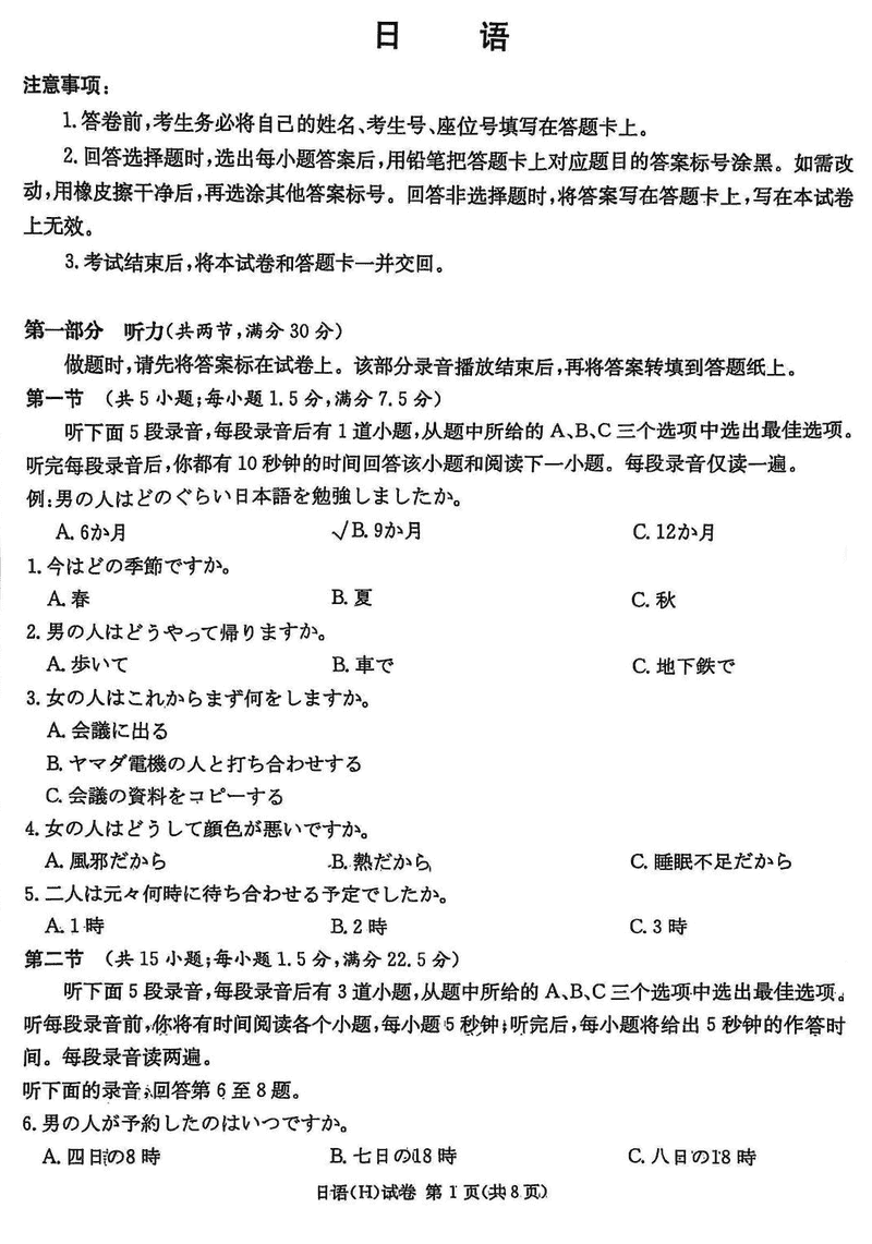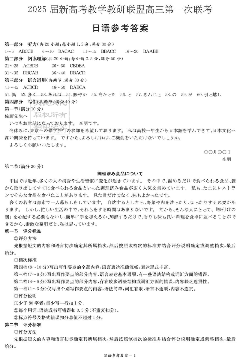 湖南省新高考教学教研联盟2025届第一次联考日语试题及答案