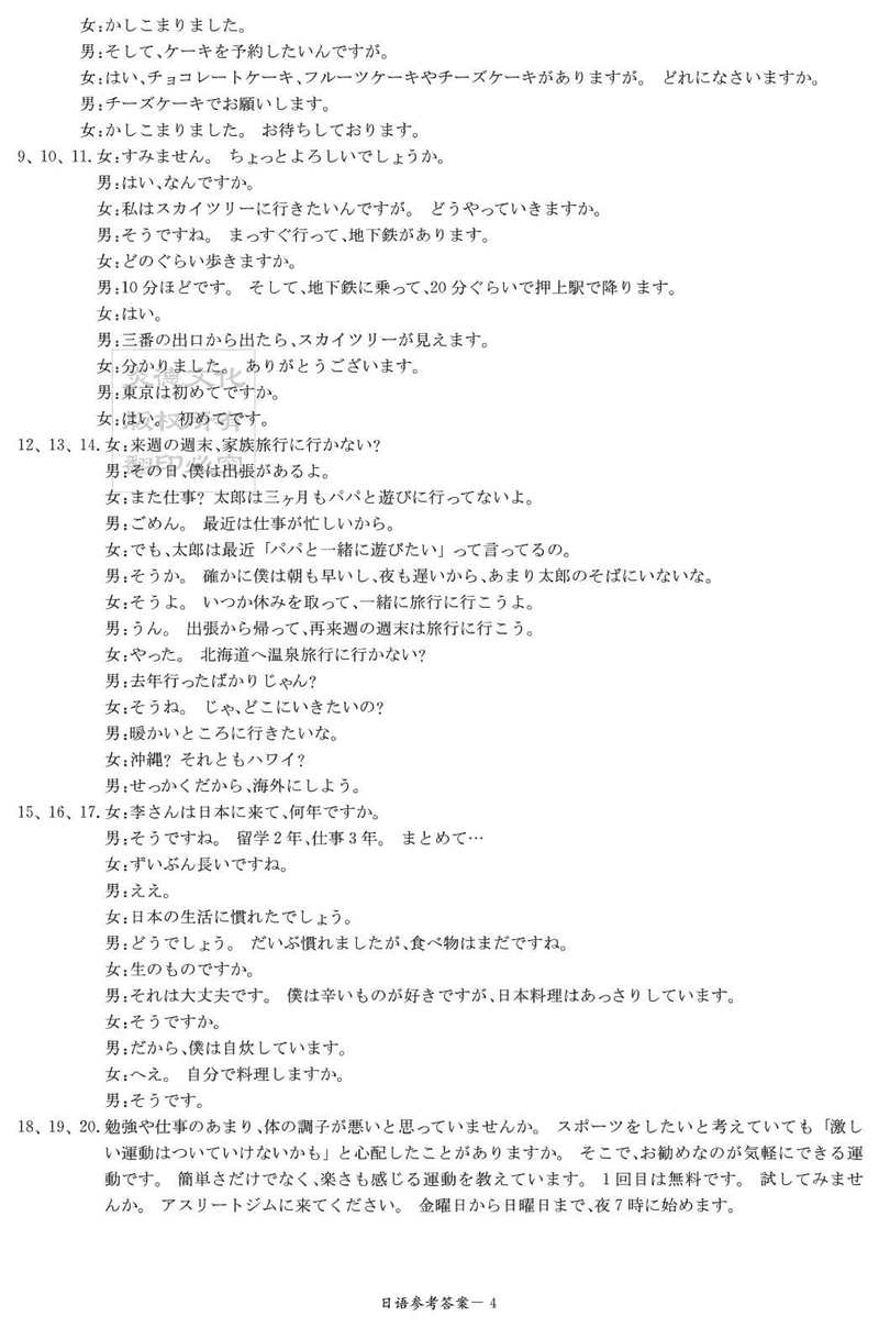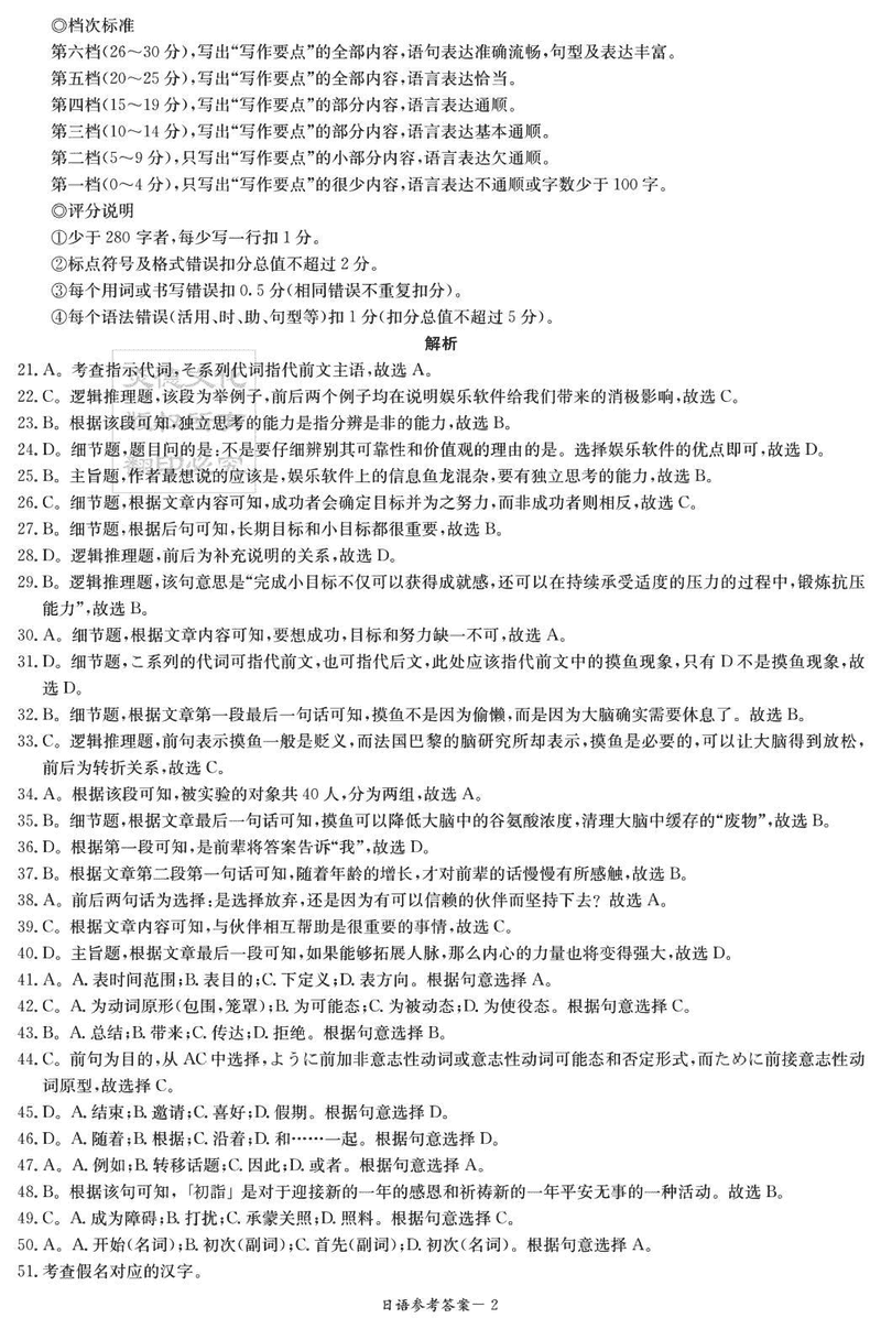 日语试题及答案解析