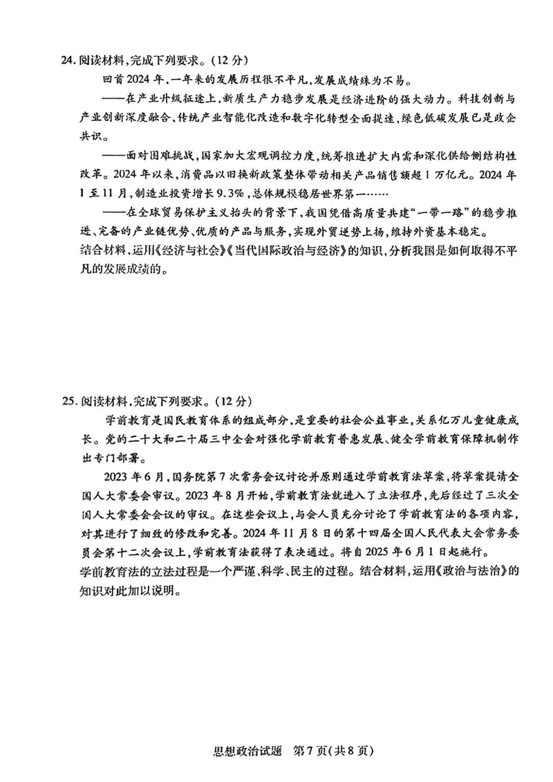 海南省天一大联考2024-2025学年高三学业水平诊断(三)政治试题及答案