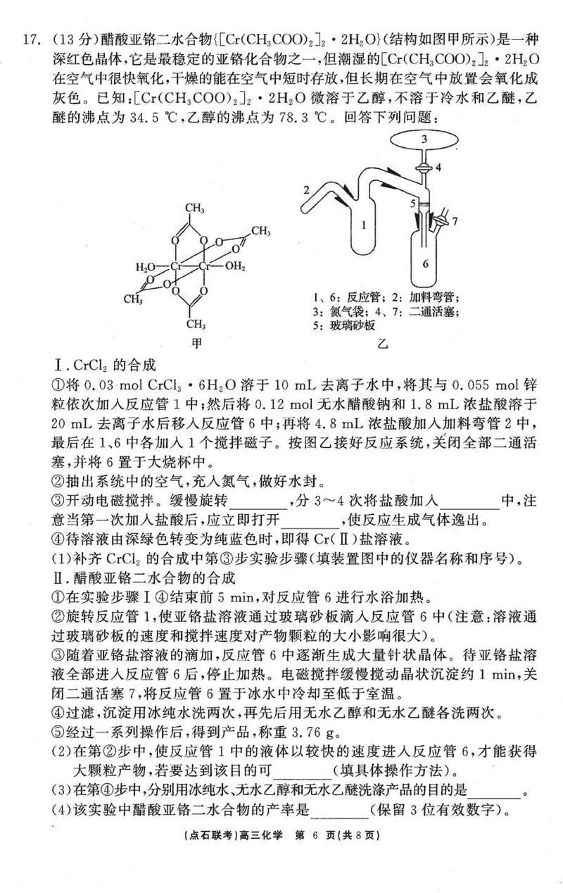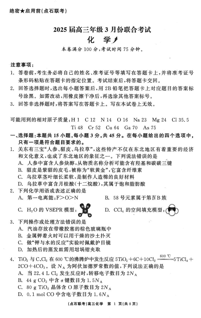辽宁点石联考2025届高三3月联考化学试题及答案 时间:2025-03-05 辽宁 理综试题 辽宁点石联考2025届高三3月联考化学考试已于近日开考,为方便考生考后及时查看考试情况,查漏补缺、弥补不足,本文整理了试题答案解析相关信息! 汇总:辽宁省点石联考2025届高三3月份联考试题及答案汇总 化学试题及答案解析