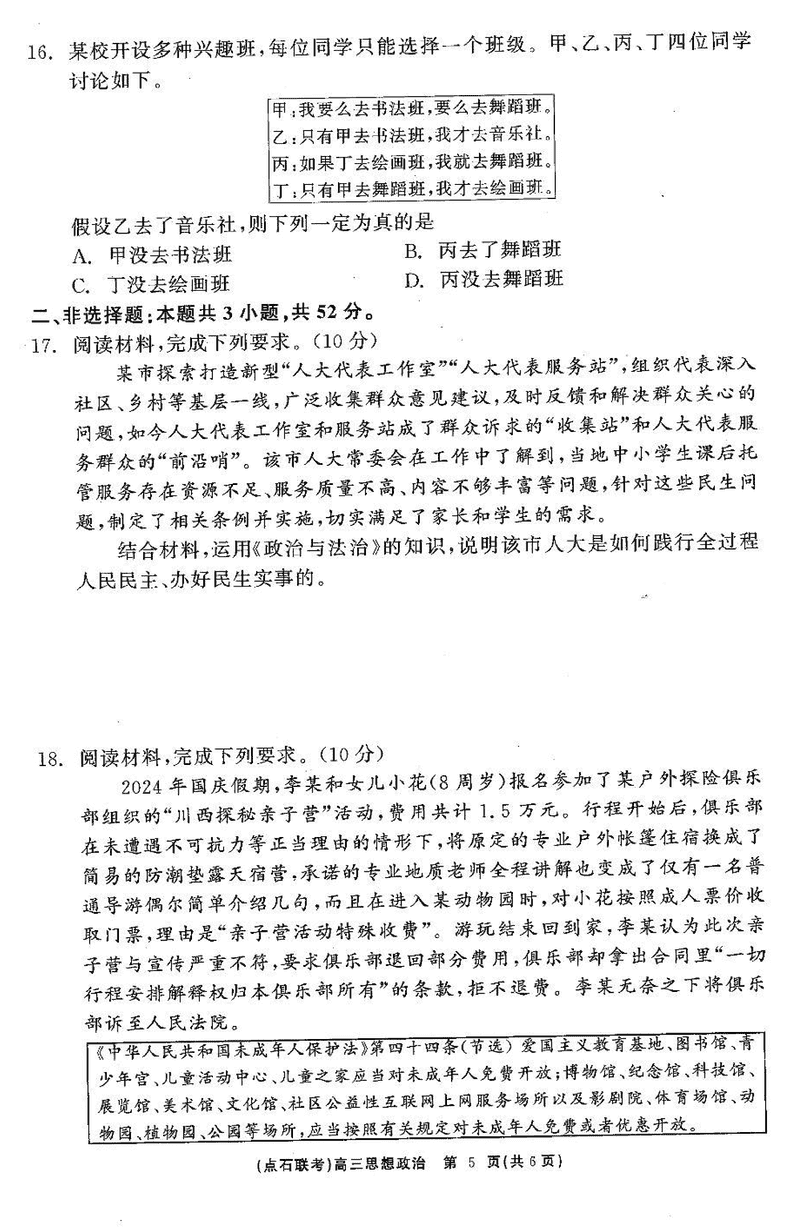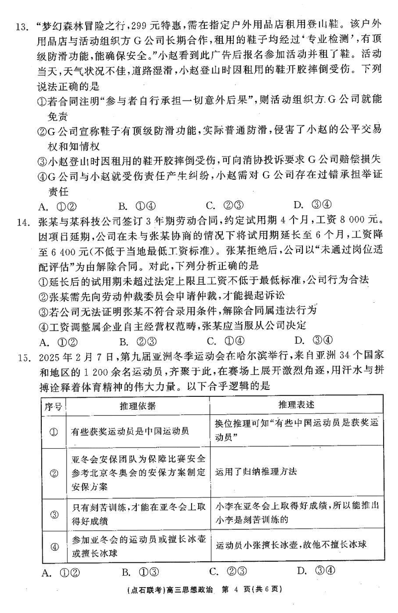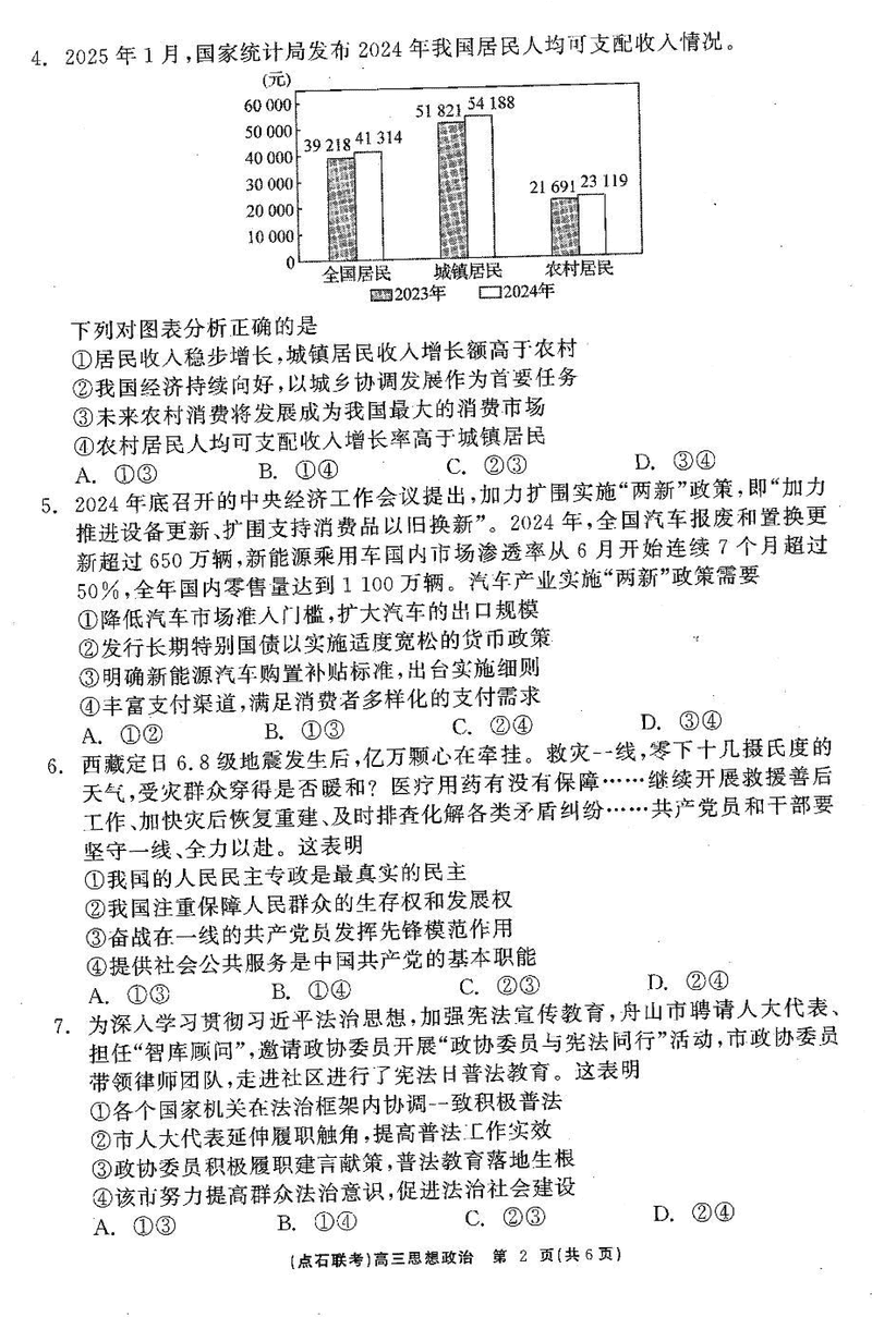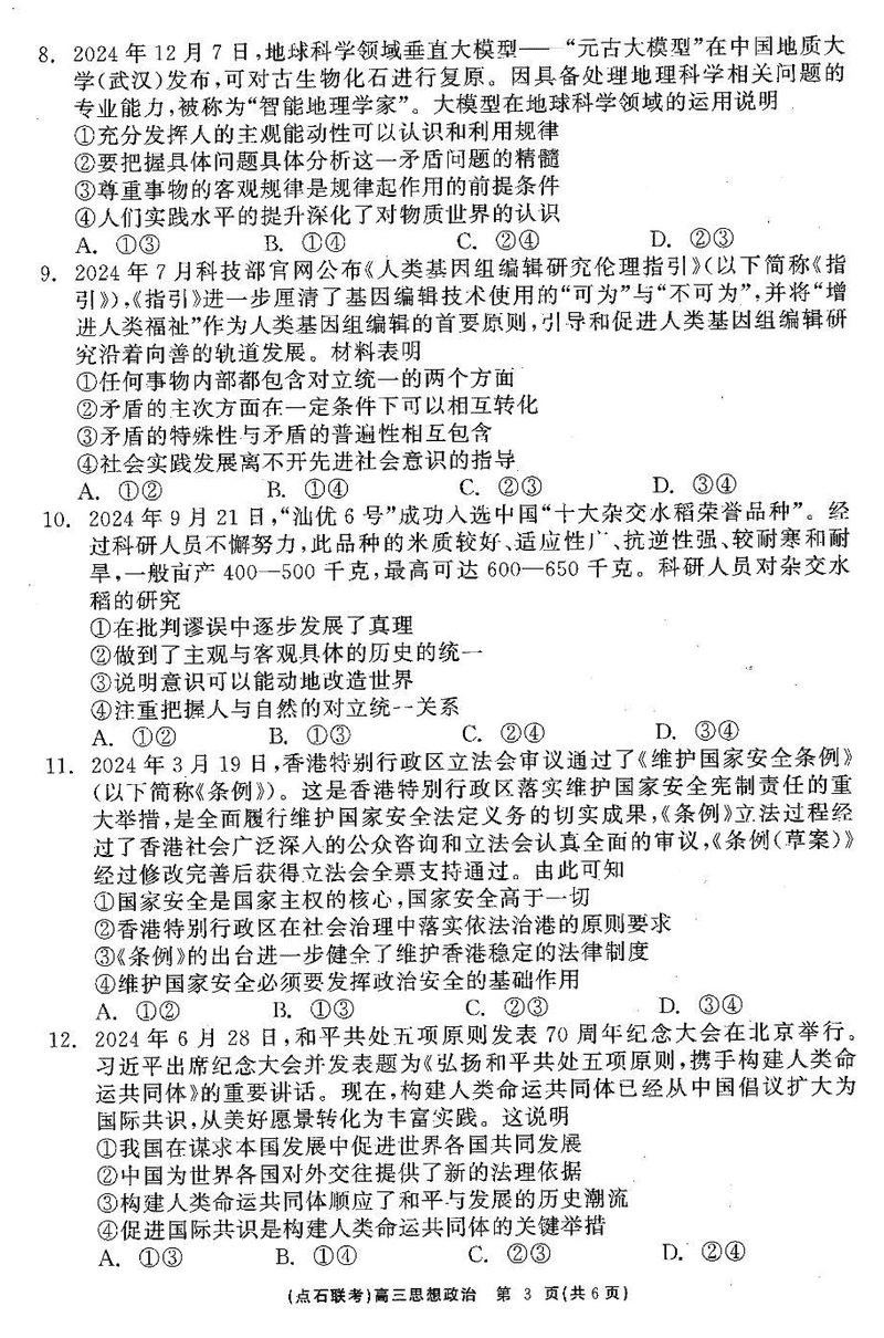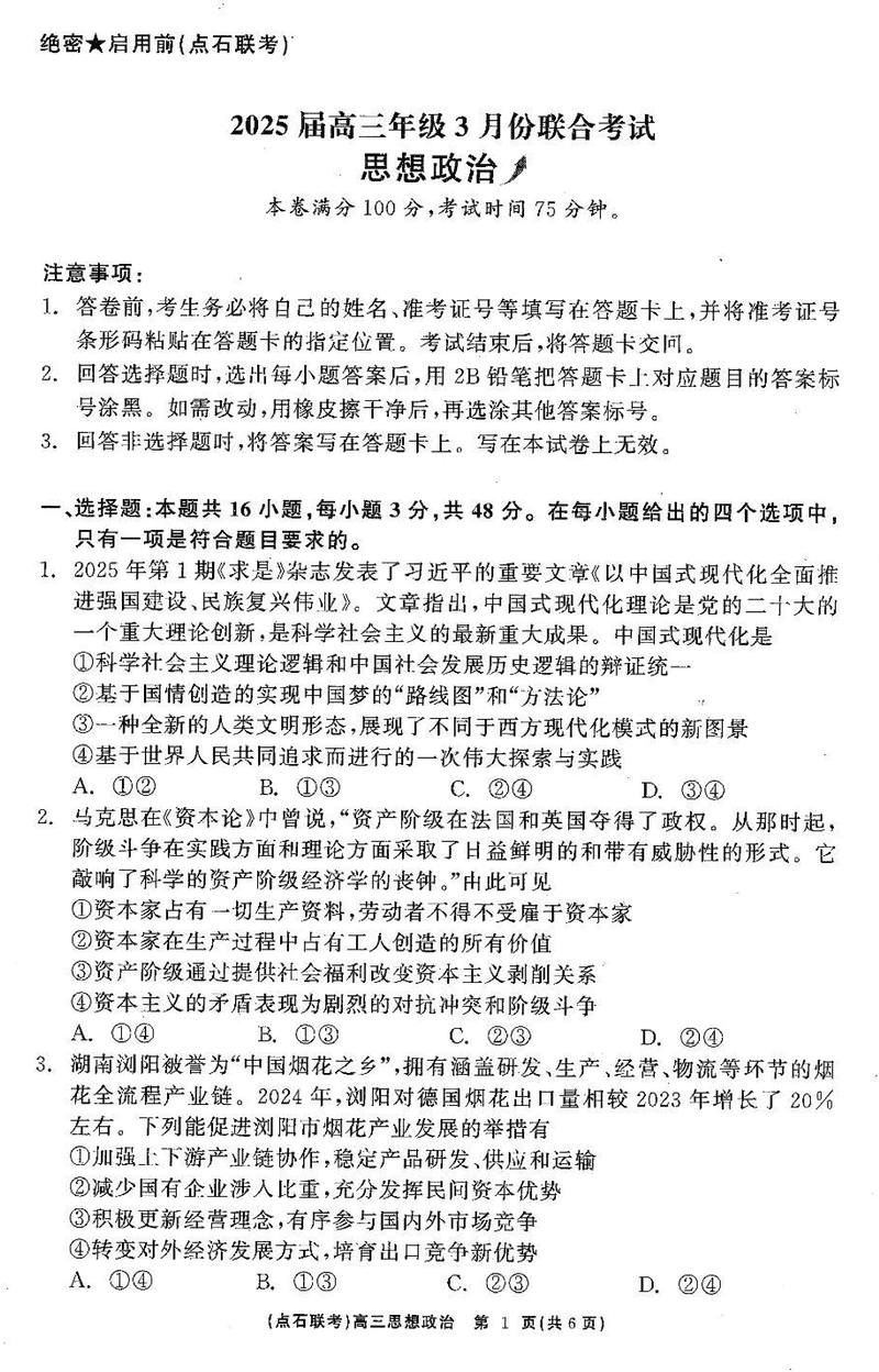 辽宁点石联考2025届高三3月联考政治试题及答案 时间:2025-03-05 辽宁 文综试题 辽宁点石联考2025届高三3月联考政治考试已于近日开考,为方便考生考后及时查看考试情况,查漏补缺、弥补不足,本文整理了试题答案解析相关信息! 汇总:辽宁省点石联考2025届高三3月份联考试题及答案汇总 政治试题及答案解析