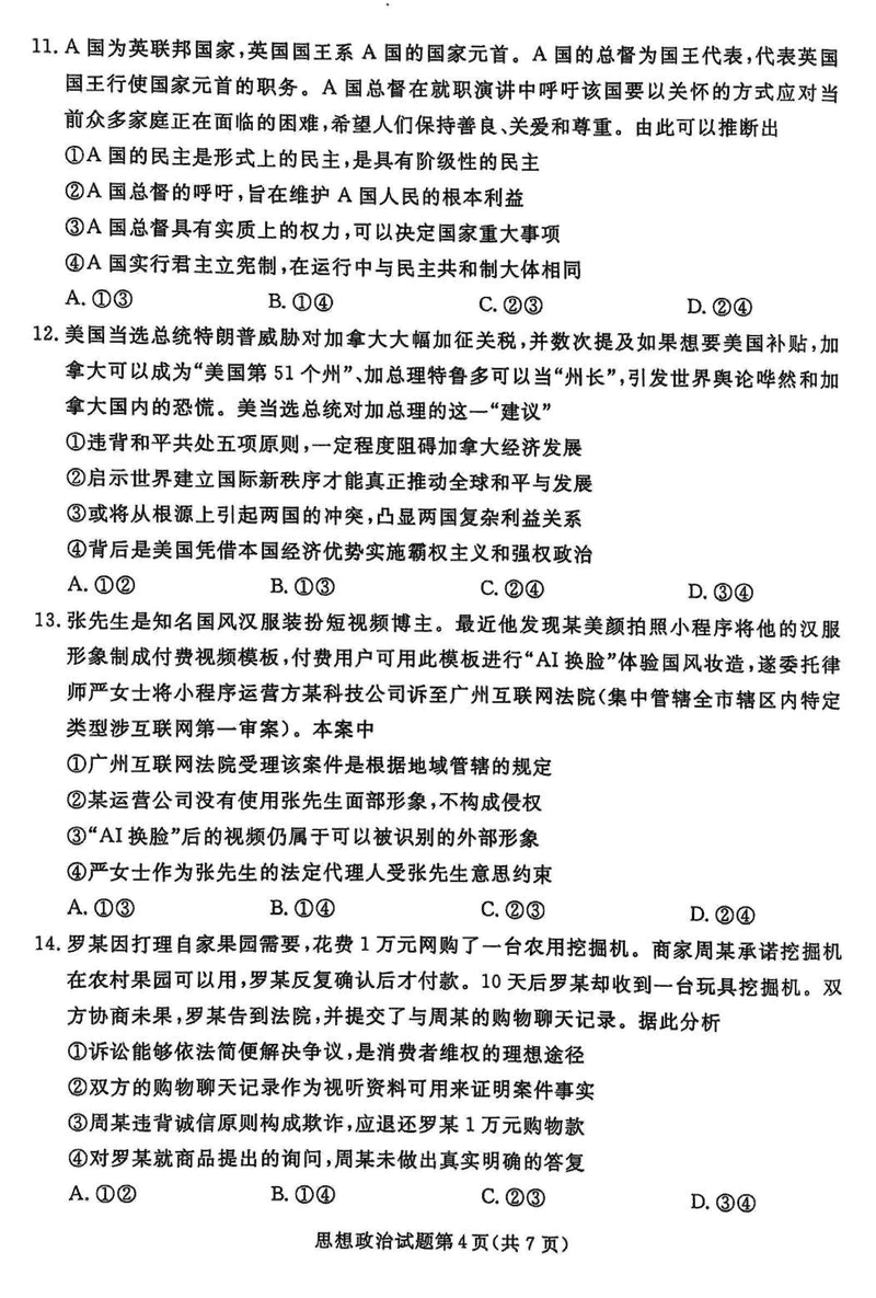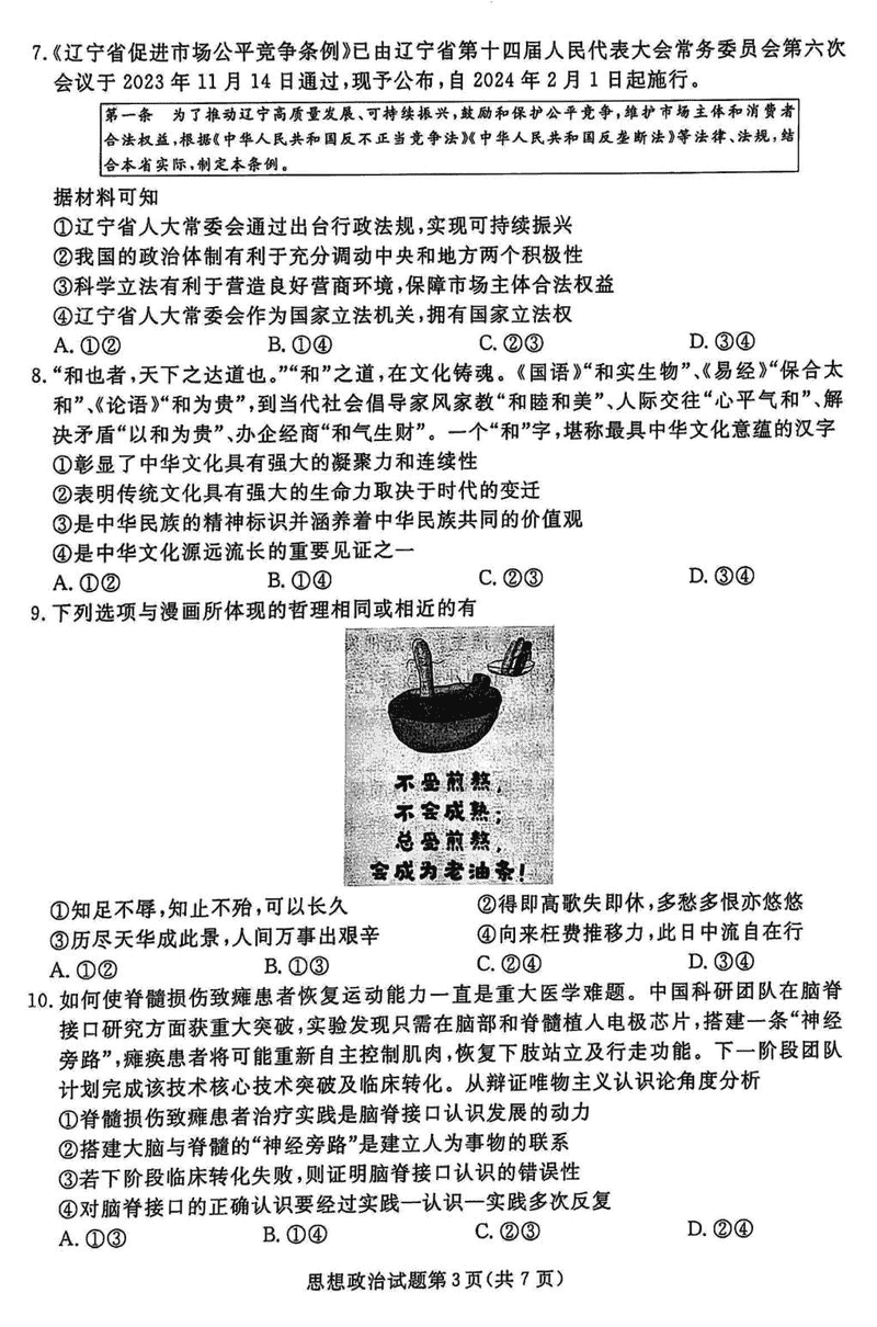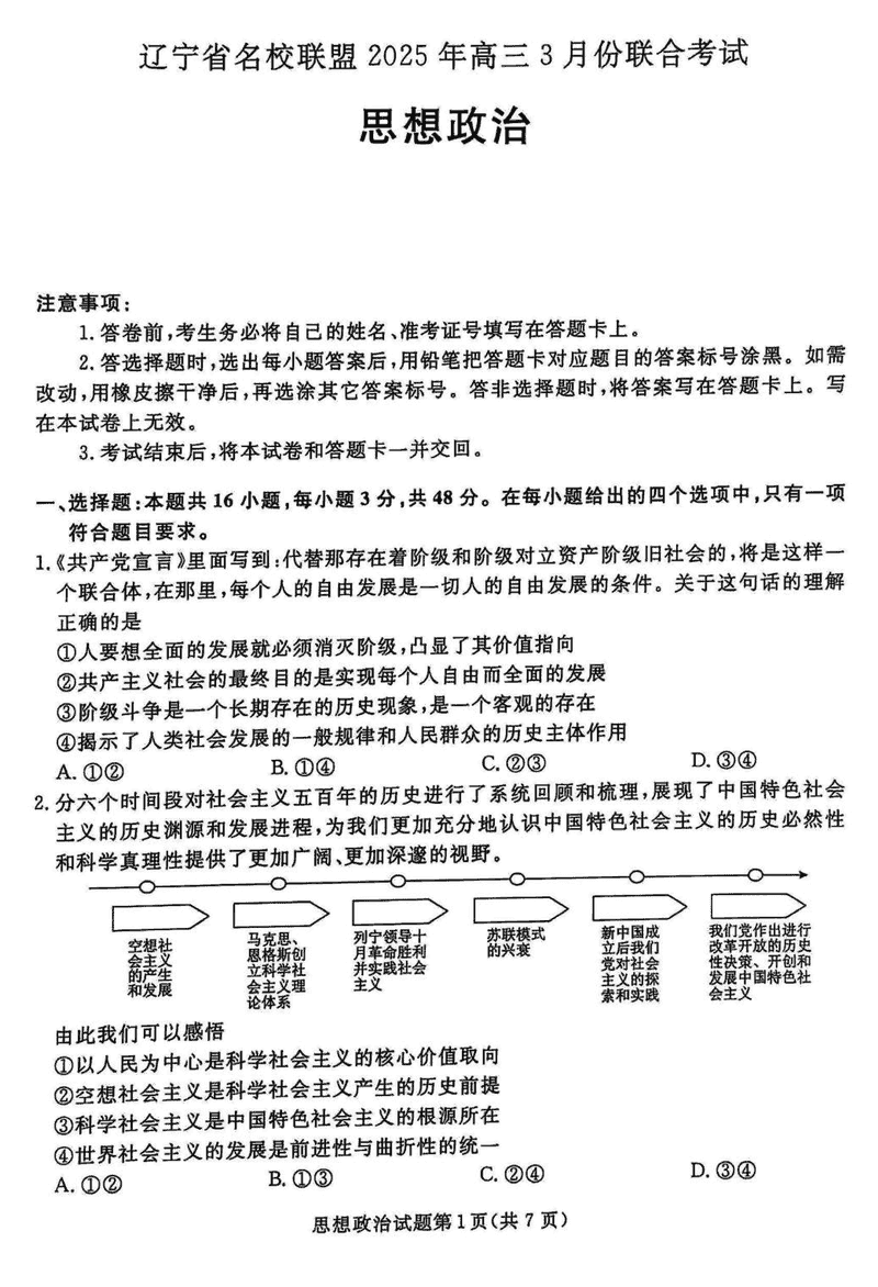 辽宁名校联盟2025届高三下学期3月联考政治试题及答案