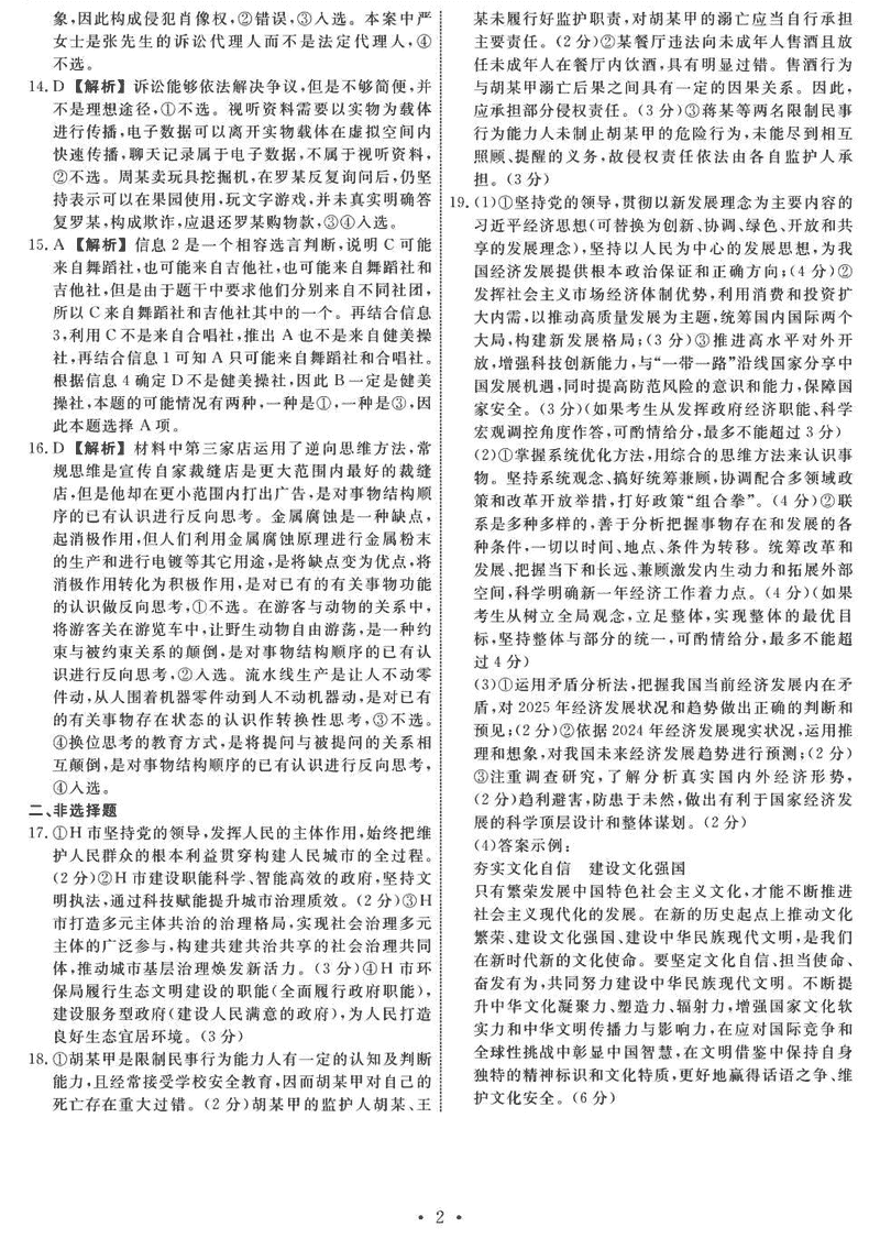 政治试题及答案解析