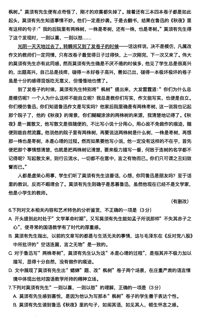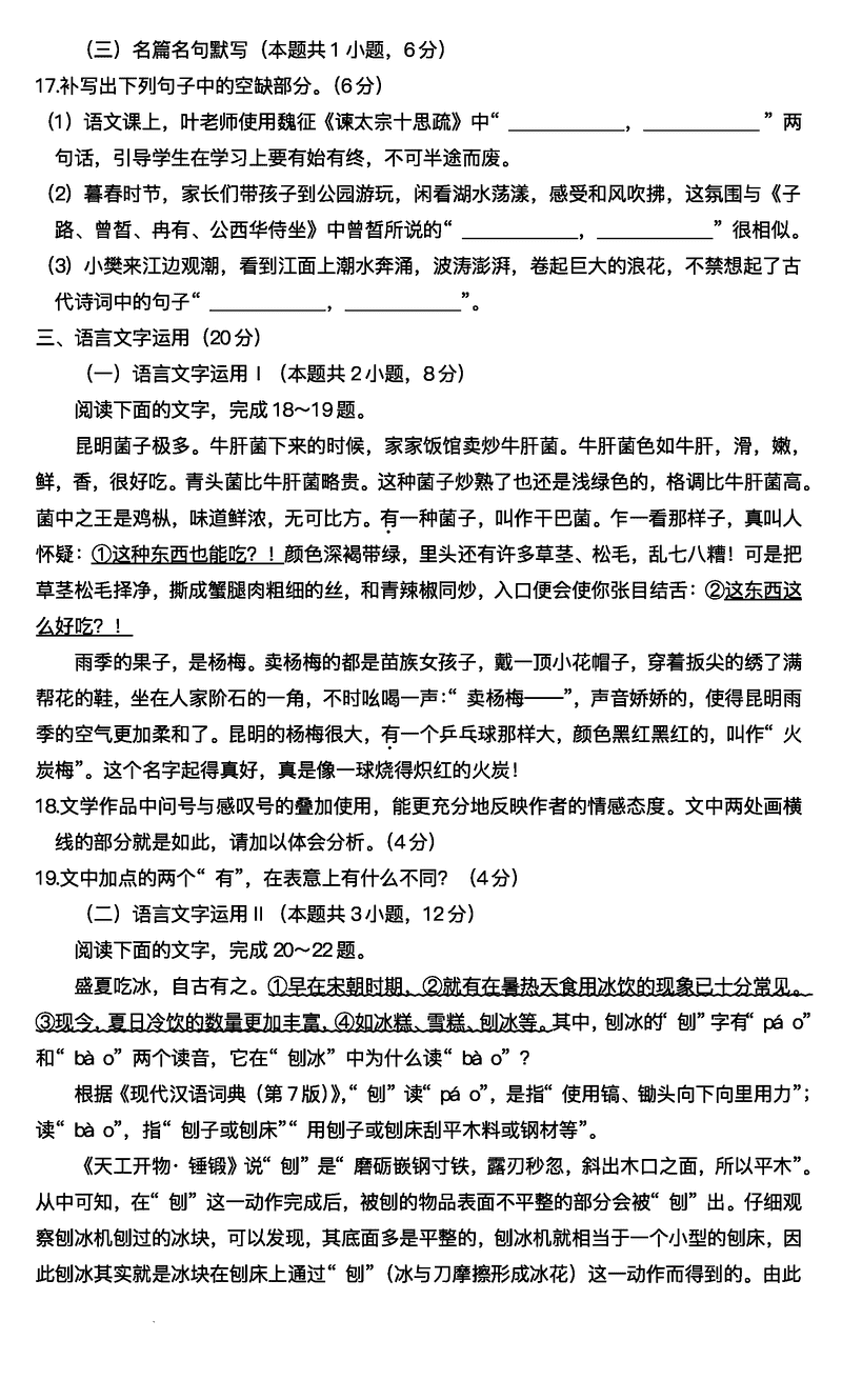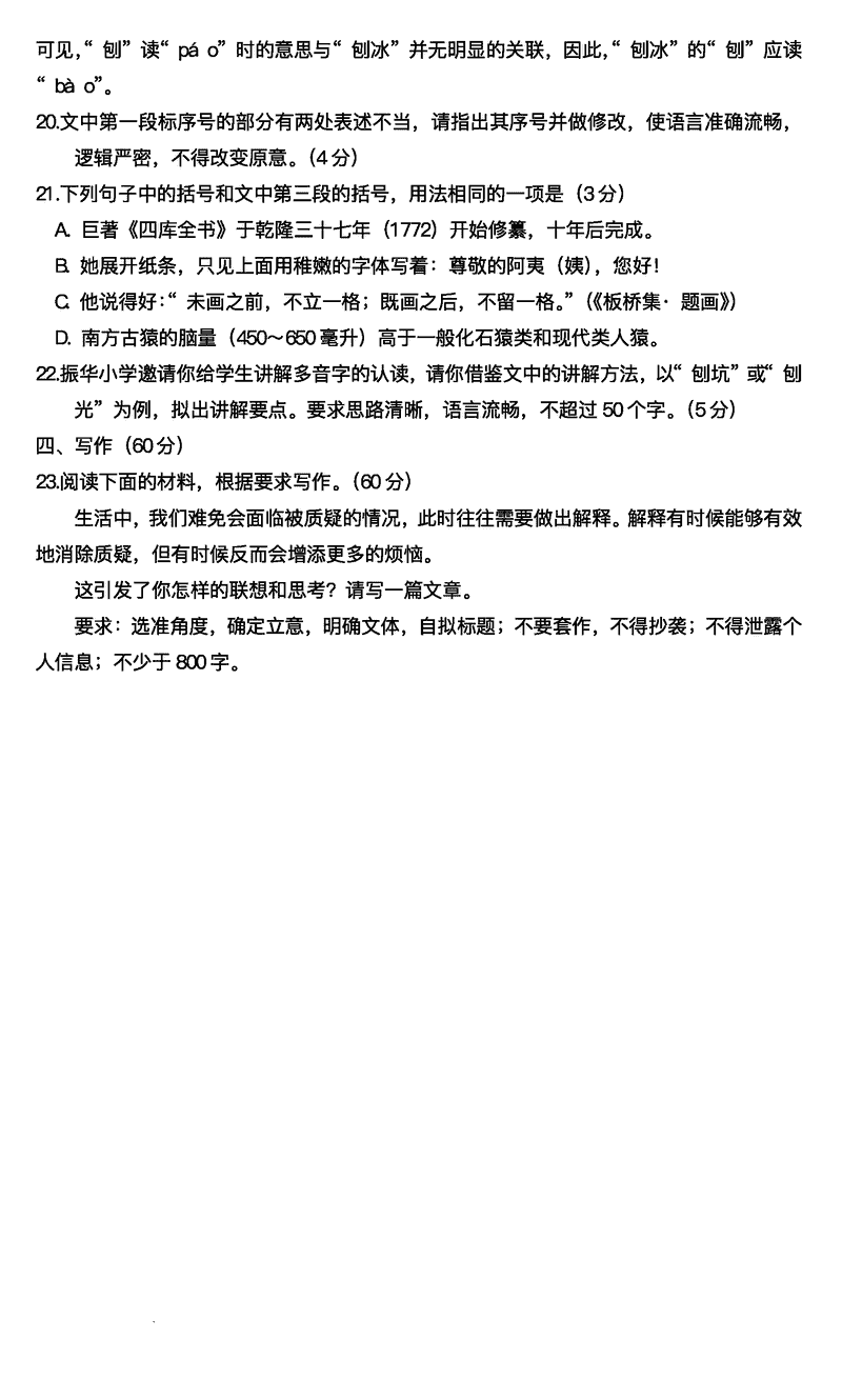 语文试题及答案解析