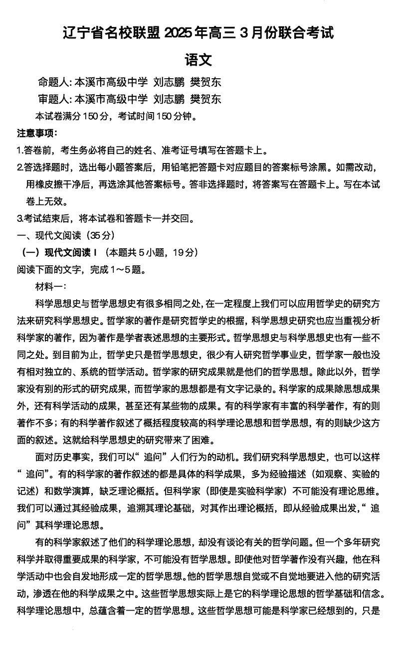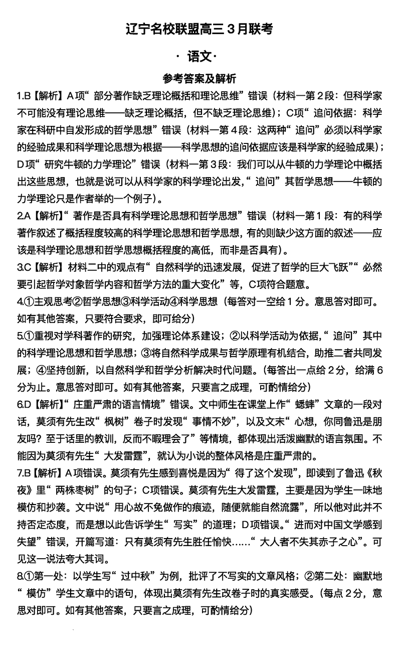 辽宁名校联盟2025届高三下学期3月联考语文考试已于近日开考,为方便考生考后及时查看考试情况,查漏补缺、弥补不足,本文整理了试题答案解析相关信息!