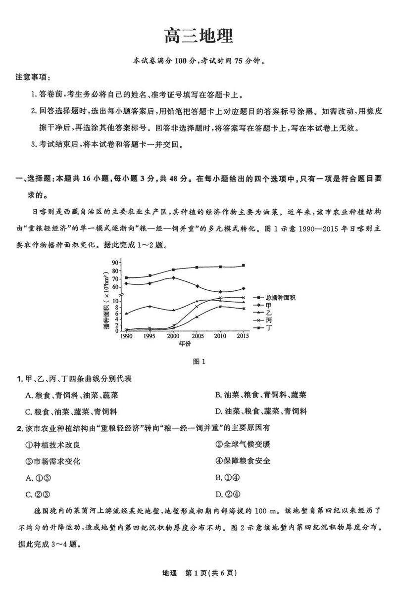 东北三省精准教学联考2025届高三3月联考地理试题及答案