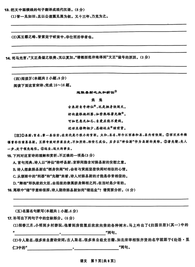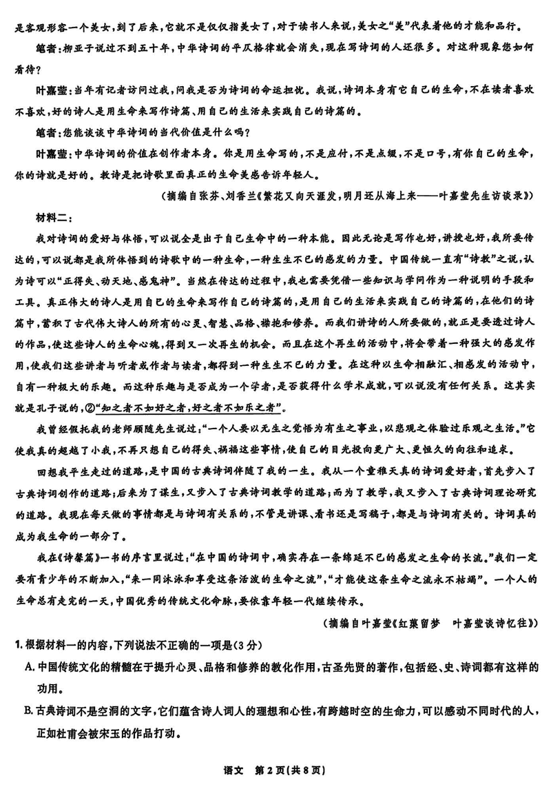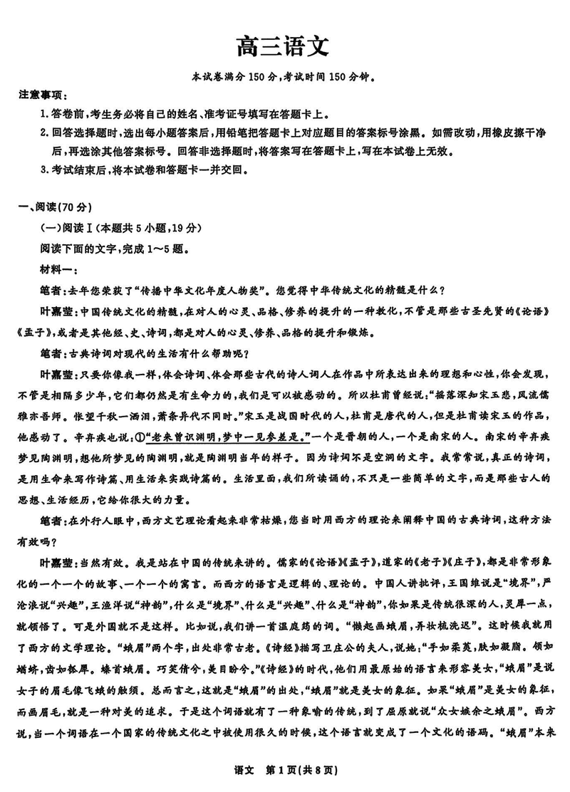 东北三省精准教学联考2025届高三3月联考语文试题及答案