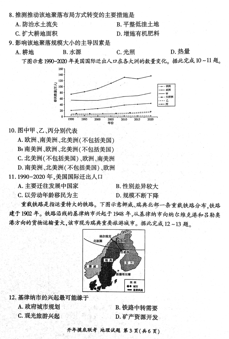 辽宁省百师联盟2025届高三开年摸底联考地理试题及答案