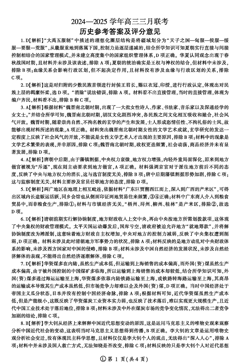 辽宁省百师联盟2025届高三开年摸底联考历史试题及答案