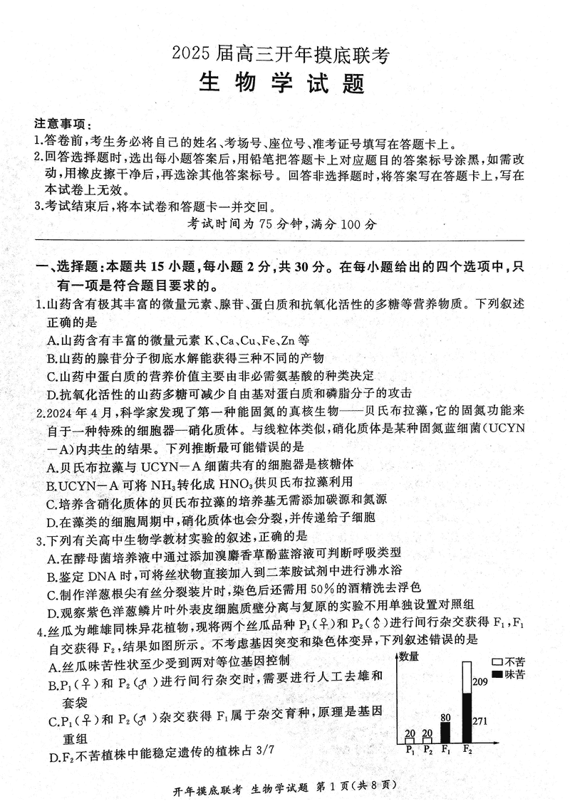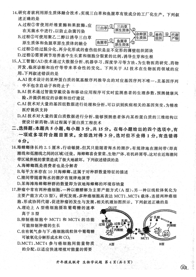 辽宁省百师联盟2025届高三开年摸底联考生物考试已于近日开考,为方便考生考后及时查看考试情况,查漏补缺、弥补不足,本文整理了试题答案解析相关信息!