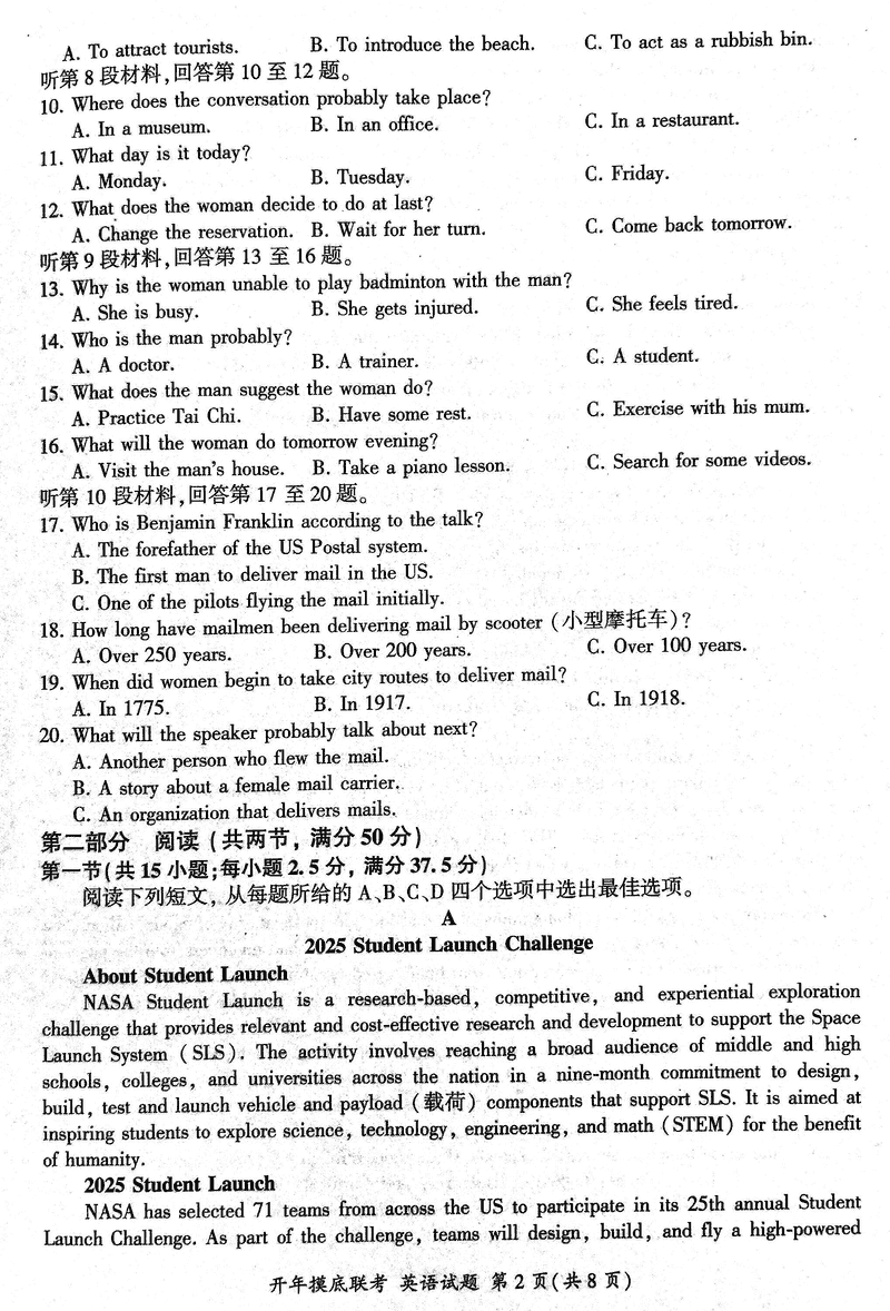 辽宁省百师联盟2025届高三开年摸底联考英语考试已于近日开考,为方便考生考后及时查看考试情况,查漏补缺、弥补不足,本文整理了试题答案解析相关信息!