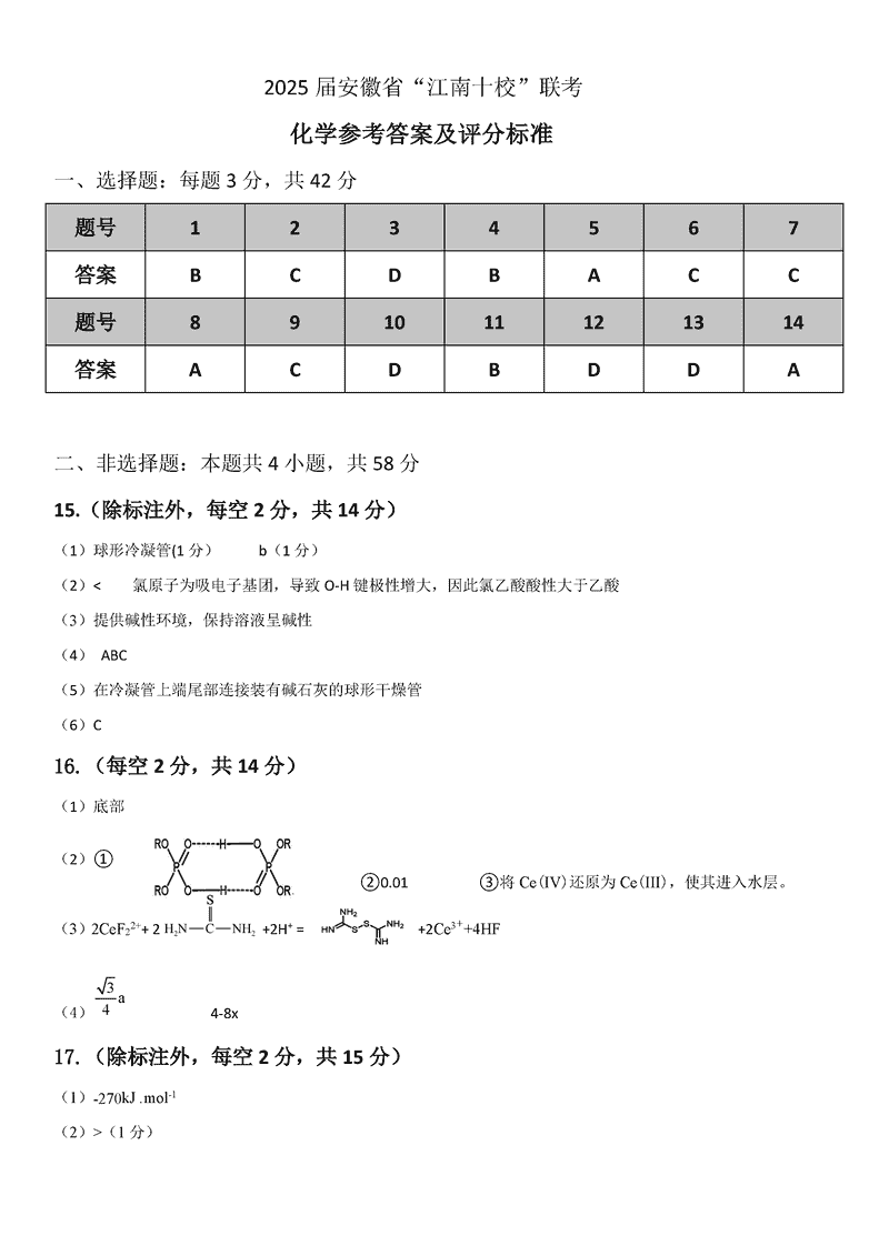 安徽省江南十校一模2025届高三下学期第一次联考化学考试已于近日开考,为方便考生考后及时查看考试情况,查漏补缺、弥补不足,本文整理了试题答案解析相关信息!