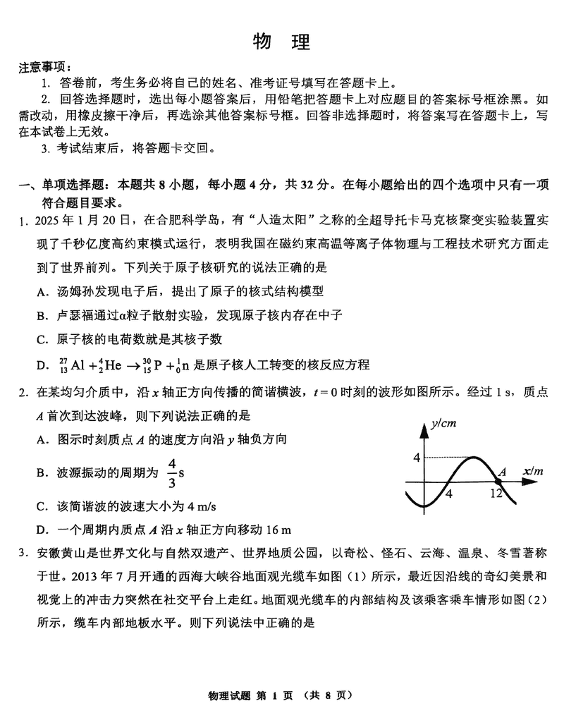 安徽省江南十校一模2025届高三下学期第一次联考物理考试已于近日开考,为方便考生考后及时查看考试情况,查漏补缺、弥补不足,本文整理了试题答案解析相关信息!