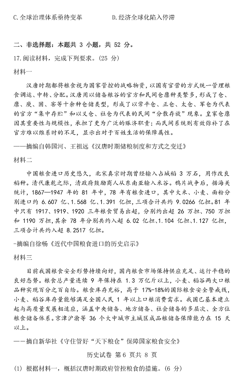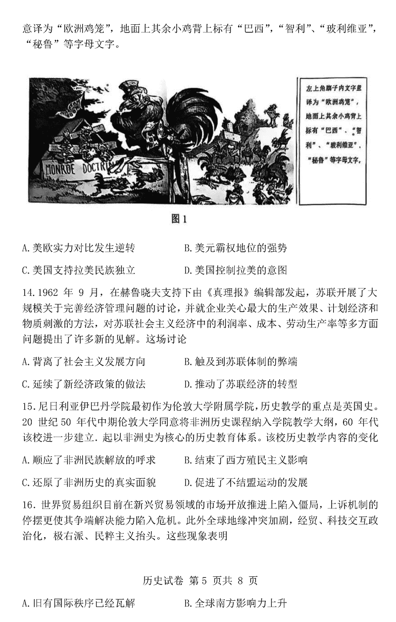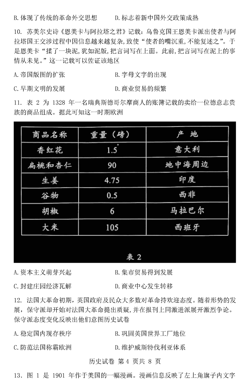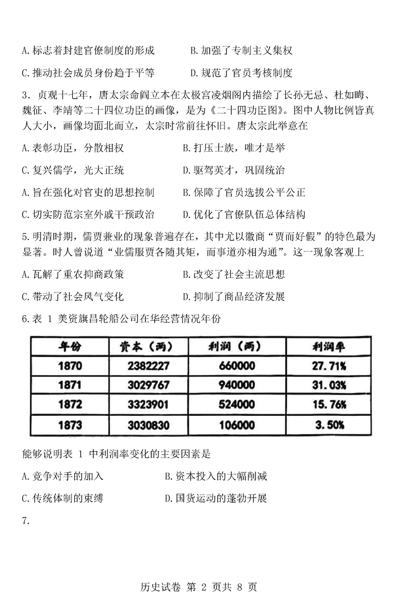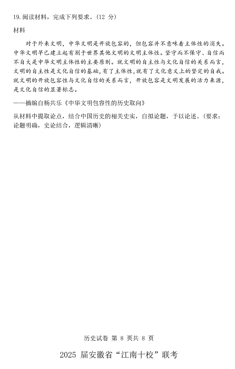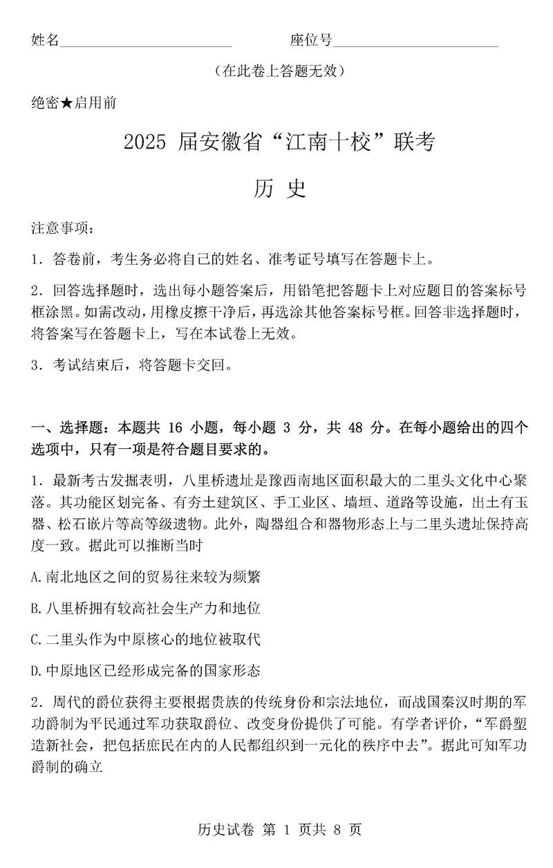 江南十校一模2025届高三下学期第一次联考历史试题及答案